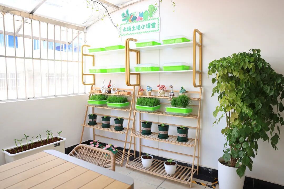 目前,展示区以蔬菜种植为主,首批引入水培芽菜(小麦苗)、樱桃萝卜、生菜、木耳菜、芹菜、葱、薄荷等多个品种,兼顾观赏性与实用性。