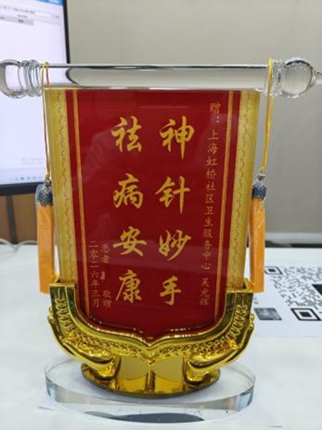 “神针妙手,祛病安康。”近日,虹桥社区卫生服务中心的东氏针灸诊室里又多了一面锦旗。送锦旗的高女士笑着说:“20多年了,现在终于踏实了。”谁能想到,一个月前她第一次走进诊室,还是边咳边说。如今,这困扰她已久的咳嗽,竟然被几根针给治好了。
