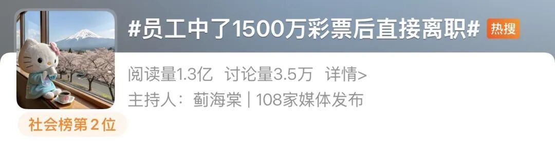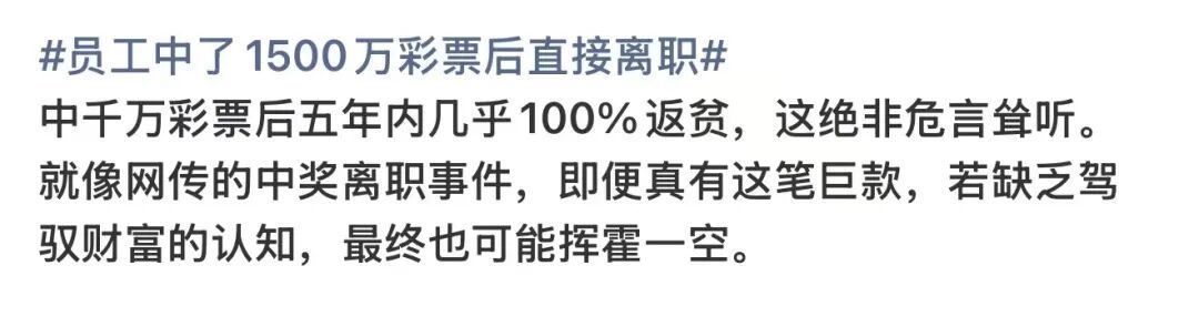 “员工中了1500万彩票后直接离职”