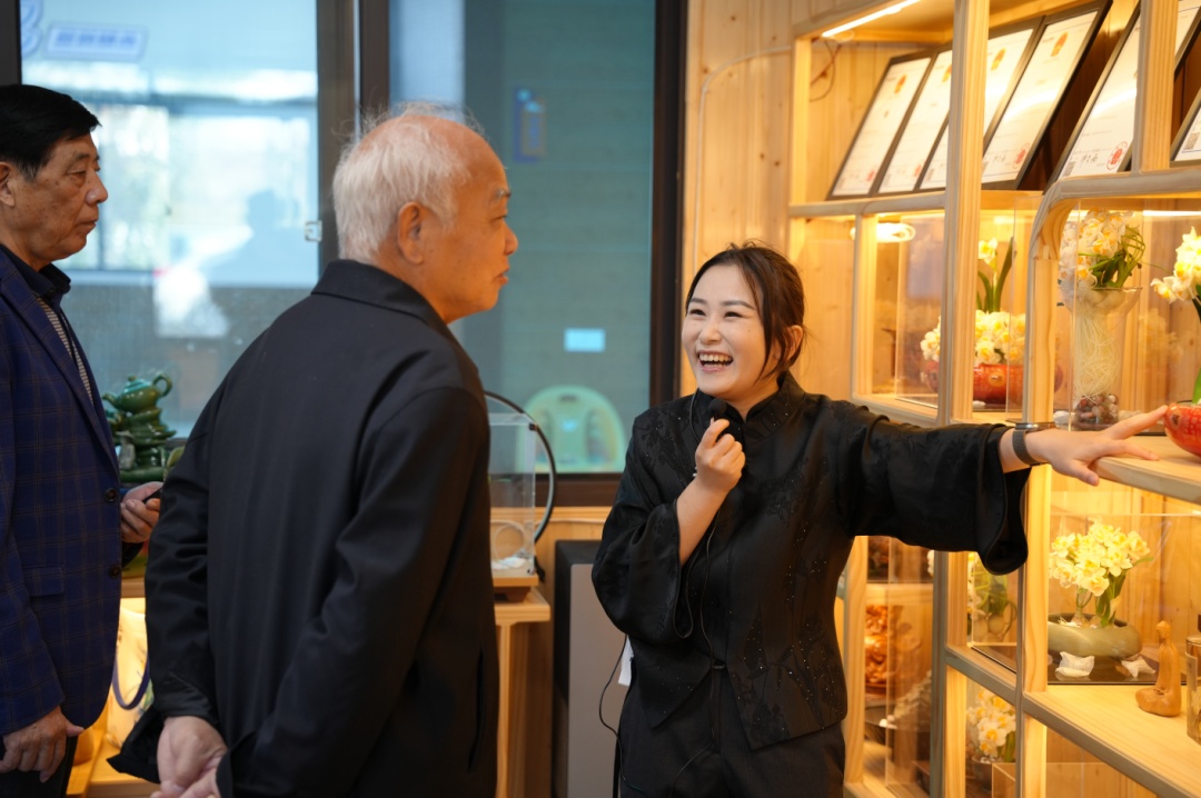 为构建全年龄段文化传承体系,李嘉熠带领公司与崇明区陈家镇老年大学达成合作,开设水仙雕刻特色课程,推动传统技艺走进社区、惠及民生;同时为中小学开放研学平台,让青少年近距离感受崇明水仙之美,培养他们的家乡文化认同感。