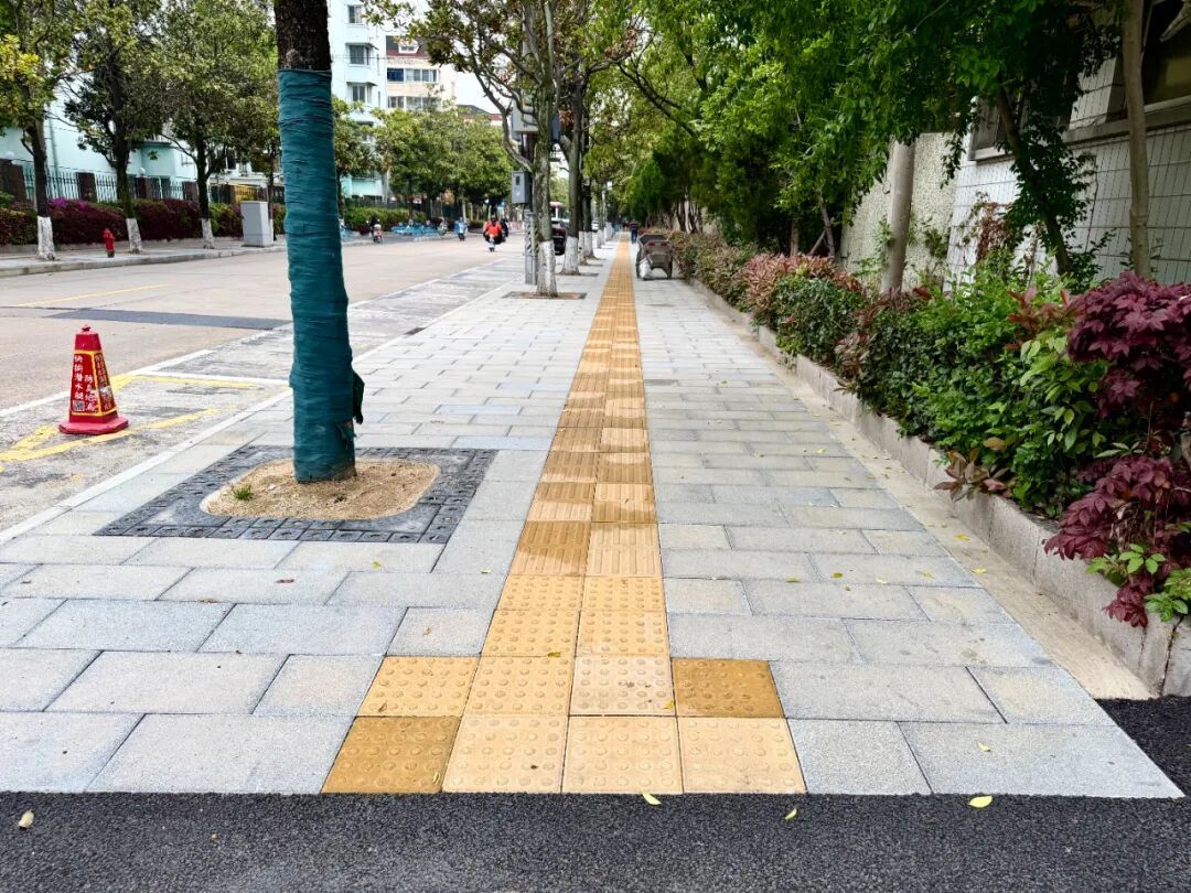 在烟火气浓郁的闵行区莘庄镇,斑驳的人行道地砖,承载过无数匆匆的脚步。最近,一位全盲视障者走过,差点撞上电线杆,新闻发布8天后,经建设单位、设计团队、养护工人共同努力,局部地砖重铺,盲道改道。