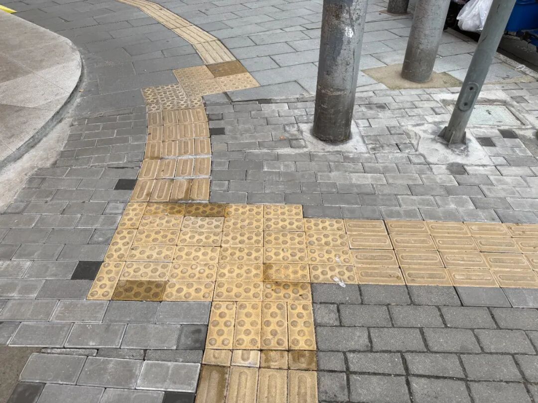 此外,人行道下方密布水、电、燃气等市政管线,检修改造要挖开施工,而部门不熟悉盲道规范,有时会无法正确恢复盲道,甚至把盲道砖误铺成普通地砖。