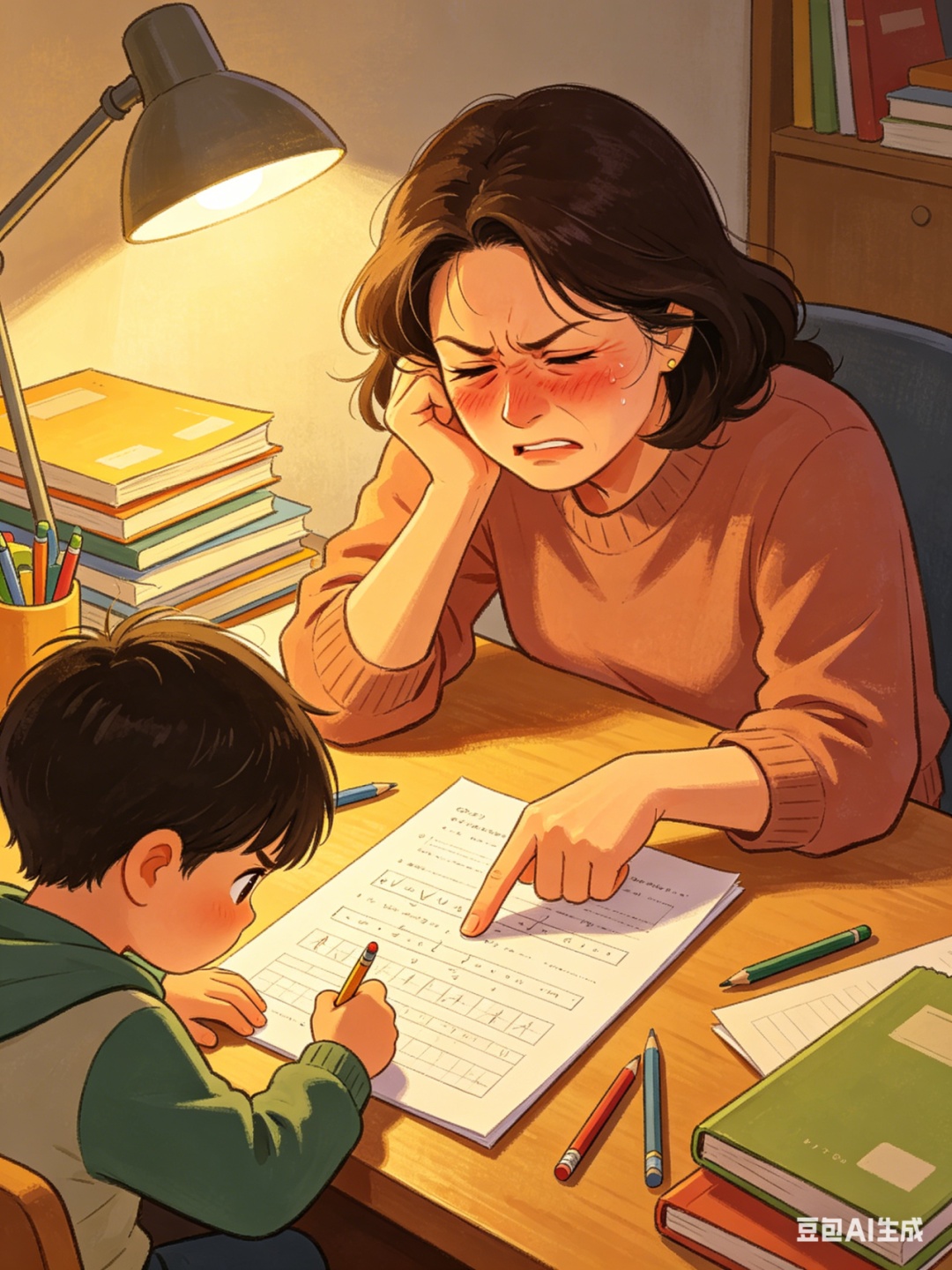 广东一位妈妈在辅导孩子写作业时,
