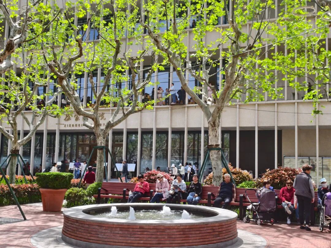 今日申城阳光上线,上午十点,徐家汇书院广场往来游人不断,不少市民静坐在长椅上,享受这份松弛的日间闲暇时光。