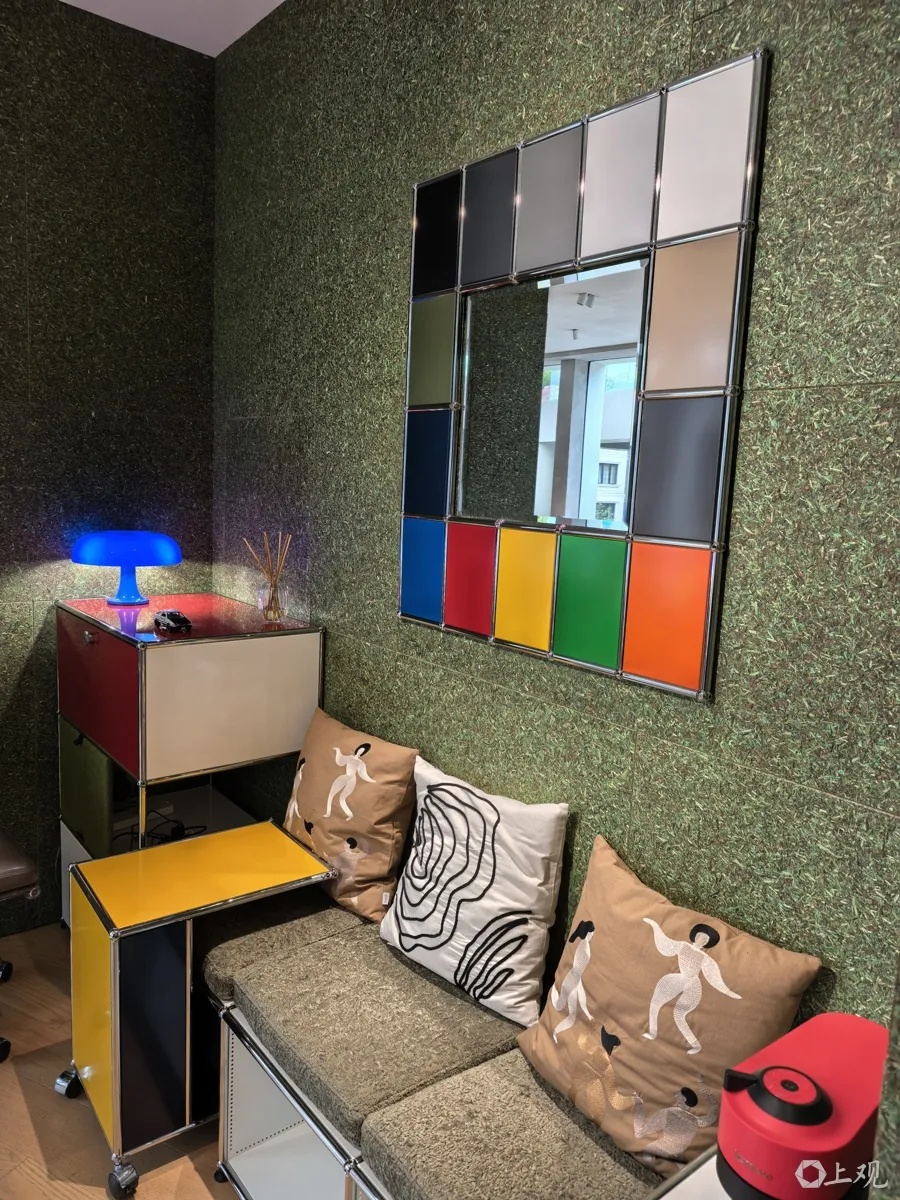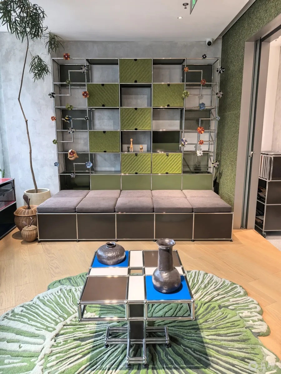 在今年全新开街的永源浜街区,拥有140余年历史的瑞士家具品牌USM开出了首个中国官方展厅。走进USM门店,宝石红、龙胆蓝、电光绿等极具饱和度色彩的家具,映入眼帘,极具个性化。坐下来了解后才发现,更具个性化的是品牌的设计。凭借模块化设计,USM被誉为“家具界的乐高”,仅靠镀铬钢管、金属球关节、金属面板三大标准件,即可自由组合、无限扩容。