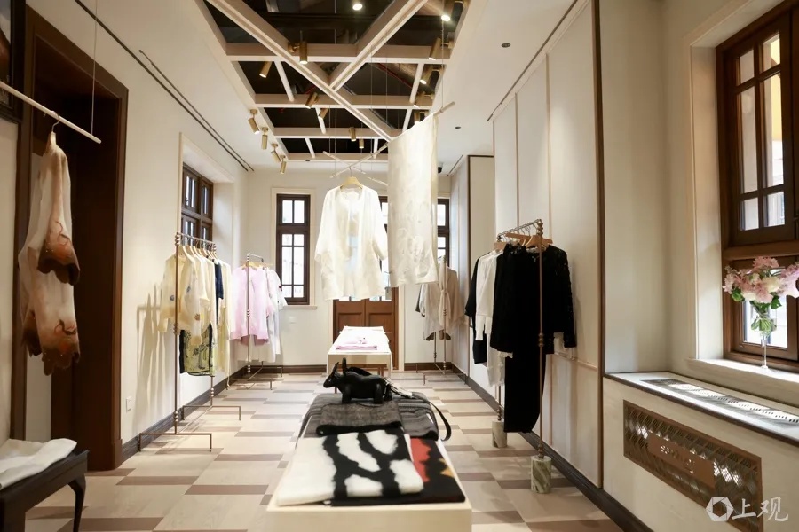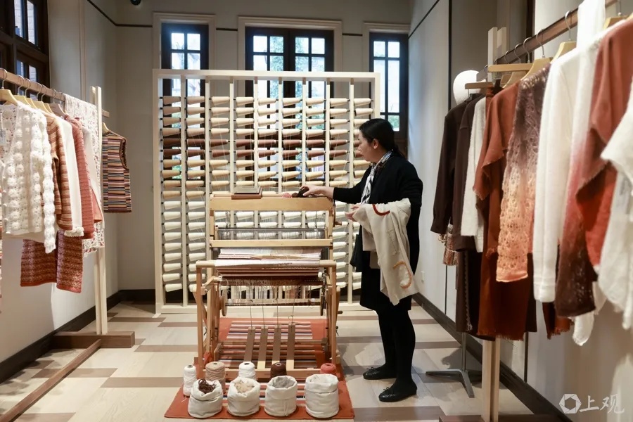 在位于张园W17的沙涓张园全球旗舰店,一位来自爱尔兰的顾客在一件价值3万元的高端羊绒外套前流连。细腻的顶级羊绒与厚重的藏族氆氇非遗技艺融合,让她一见倾心。这一款式尺码不适合她的身型,得知品牌可为自己量身定制,她果断下单。