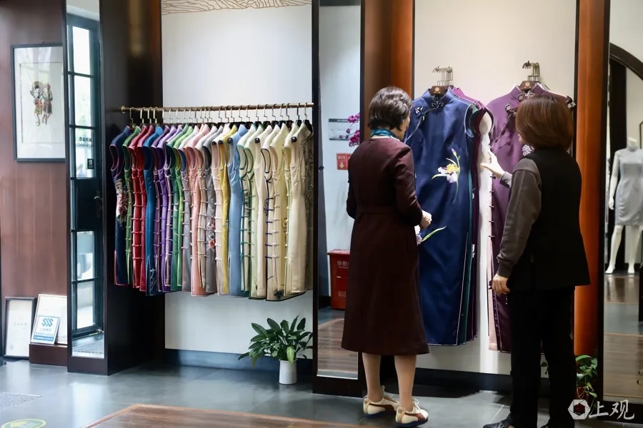 几百米之外的陕西北路上,百年老字号龙凤旗袍同样迎来定制热潮。今年1月以来,门店订单量同比取得较大增长。