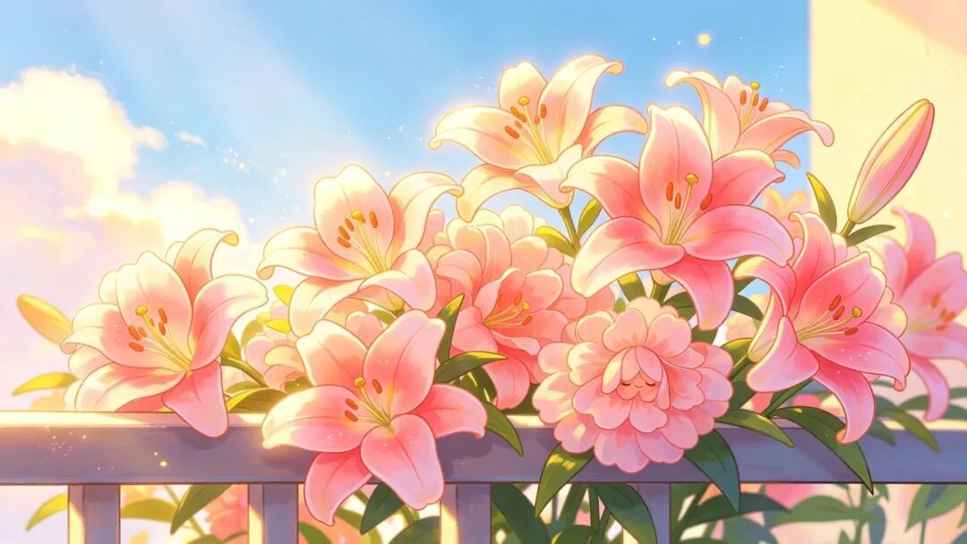 我家阳台上有好几朵花,它们可不是普通的花,它们是——重瓣百合花,是我的好朋友。
