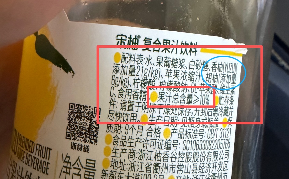 公司回应称,产品香柚及胡柚添加量分别为21g/kg和6g/kg,果汁总含量≥10%,符合国标。据悉,该产品年销超10亿,但配料表显示其以水、果葡糖浆、白砂糖为主,柚成分占比不足3%。创始人宋伟曾解释,定价较高源于稀缺的香柚原料成本。