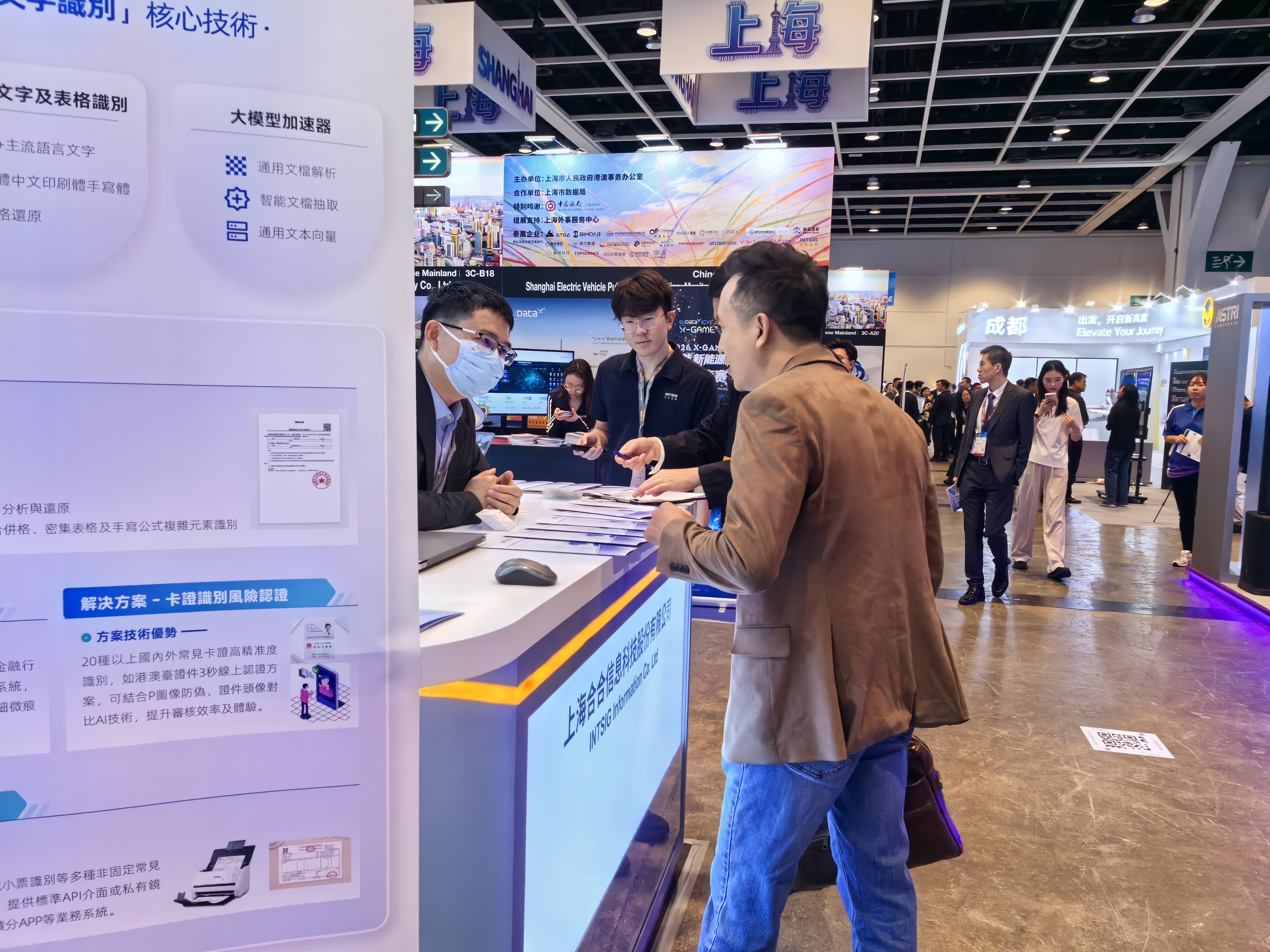 从数据港的绿色算力基础设施,到合合信息的AI文本识别跨境应用;从鲁班软件聚焦智慧城市建筑的BIM数字孪生技术,到控创信息深耕轨道交通的智能运维机器人;再到陶术生物依托大数据的新药研发服务,以及浦江数链、正先电子等企业的前沿技术成果,这不仅是一项技术、一套产品的集中陈列,更是市北高新主动融入沪港合作大战略、持续推动企业走向国际市场的具象化呈现。