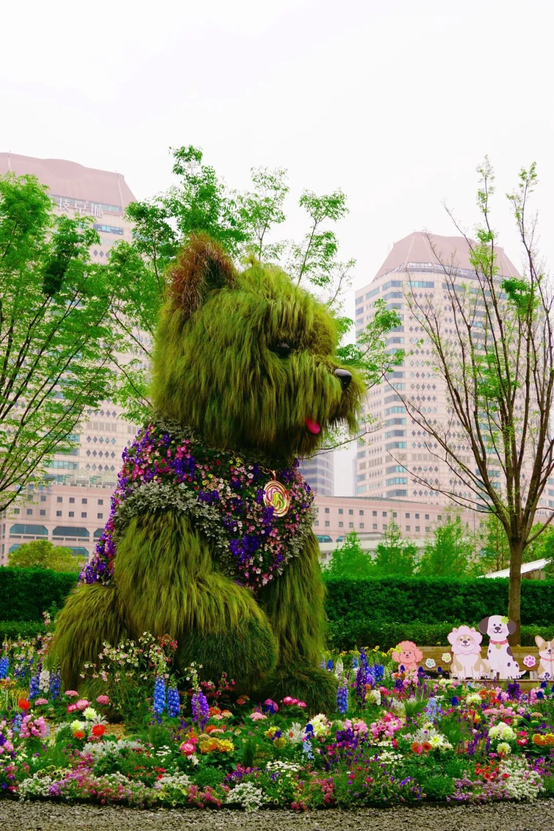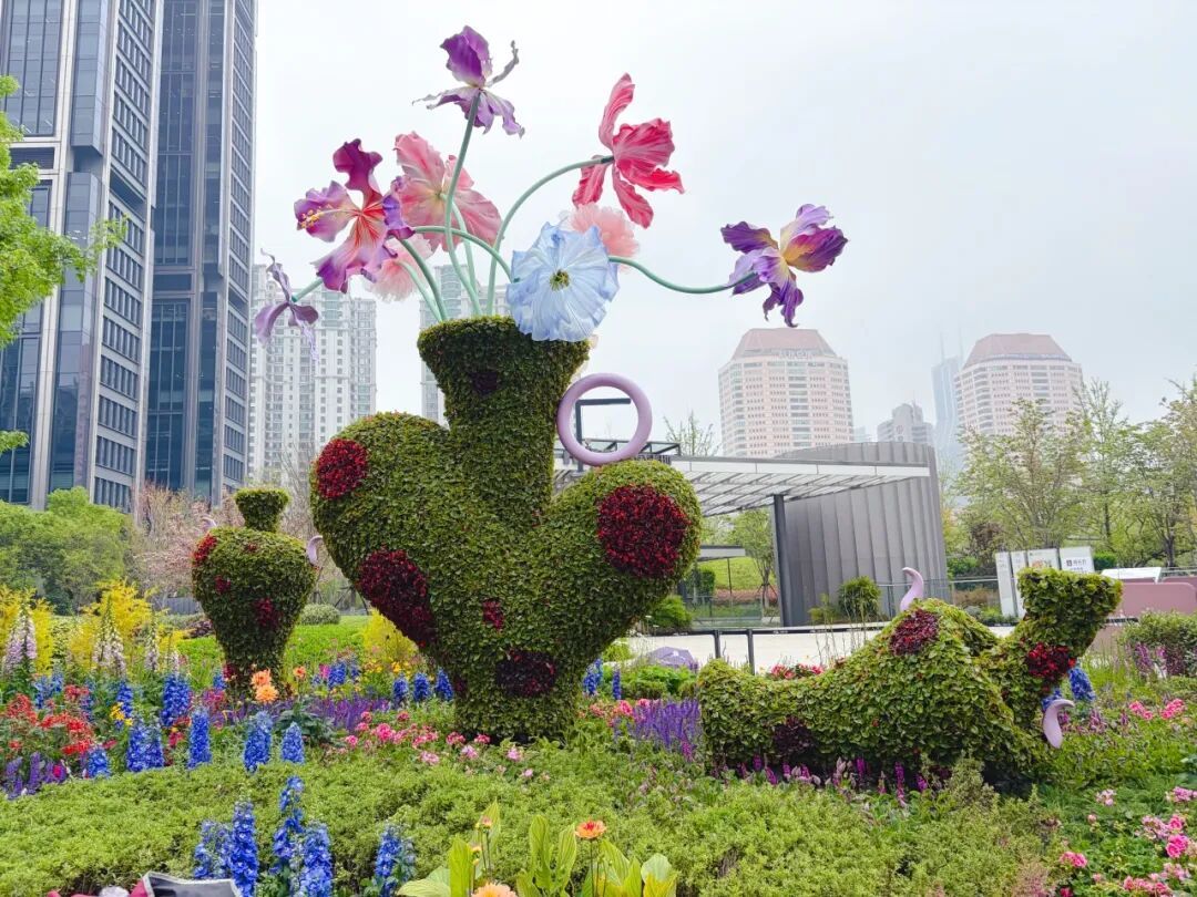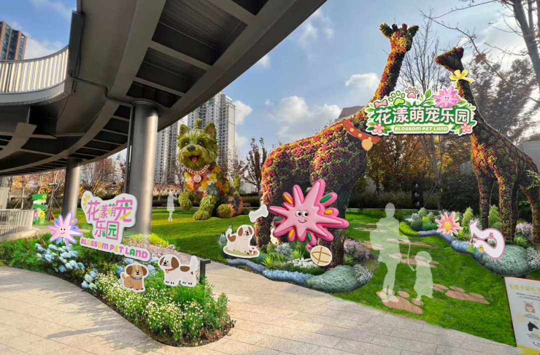 “新晋顶流”就来自于这个点位!以花艺赋能人宠共生空间,打造沉浸式体验,核心亮点包括巨型宠物主题绿植雕塑、长颈鹿绿雕,为宠物爱好者构建了一个充满想象力的“花漾”乌托邦,倡导在城市绿洲中享受人与萌宠的和谐时光。
