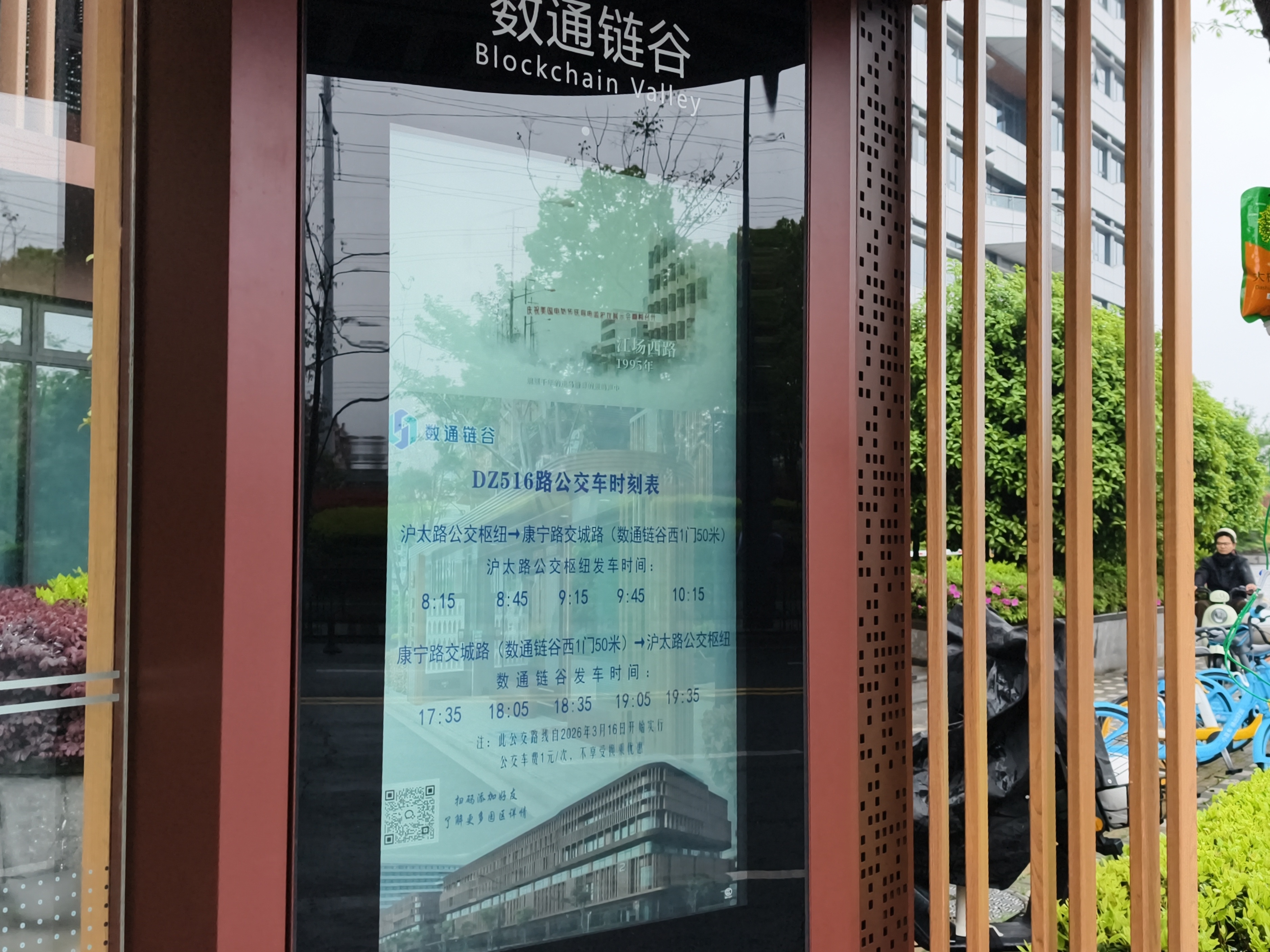 雨天的早晨,从DZ516线下来的乘客不再像以前那样狼狈地收起湿透的裤脚,而是从容地撑开伞,几步就跨进了数通链谷。一条1块钱的定制公交,连起的不只是两个站点,更是从“潮汐式焦虑”到“门对门从容”的园区温度。
