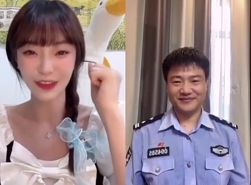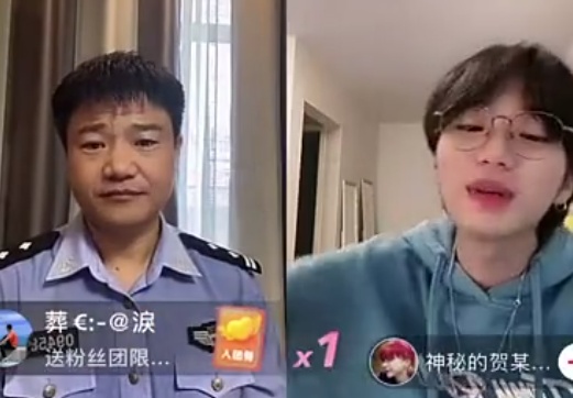 却发现与自己连麦的男子身穿警服