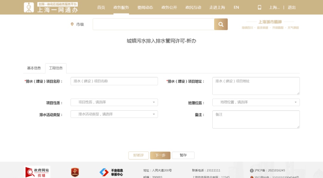 友情提醒:在黄浦、徐汇、长宁、静安、普陀、虹口、杨浦七个区从事餐饮活动,且向市属排水设施排放污水的排水户由市水务局核发排水许可证;临港地区由临港新片区管委会核发排水许可证;其他区域由各区水务部门核发排水许可证。