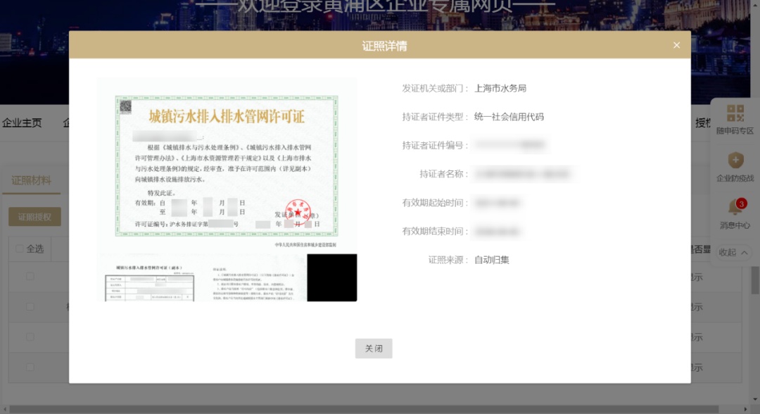 电子证照展示页面: