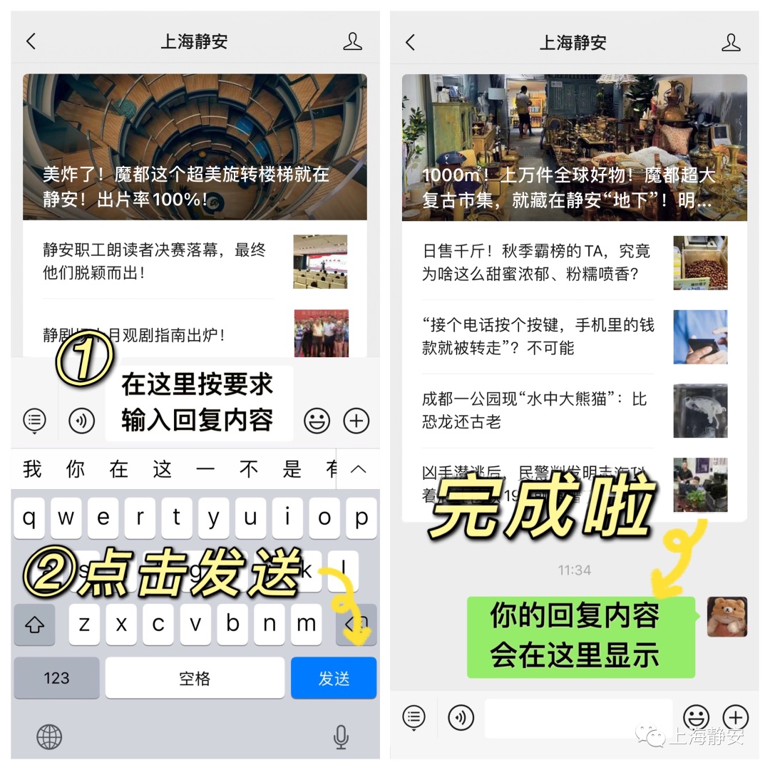 并在“上海静安”微信公众号对话框回复
