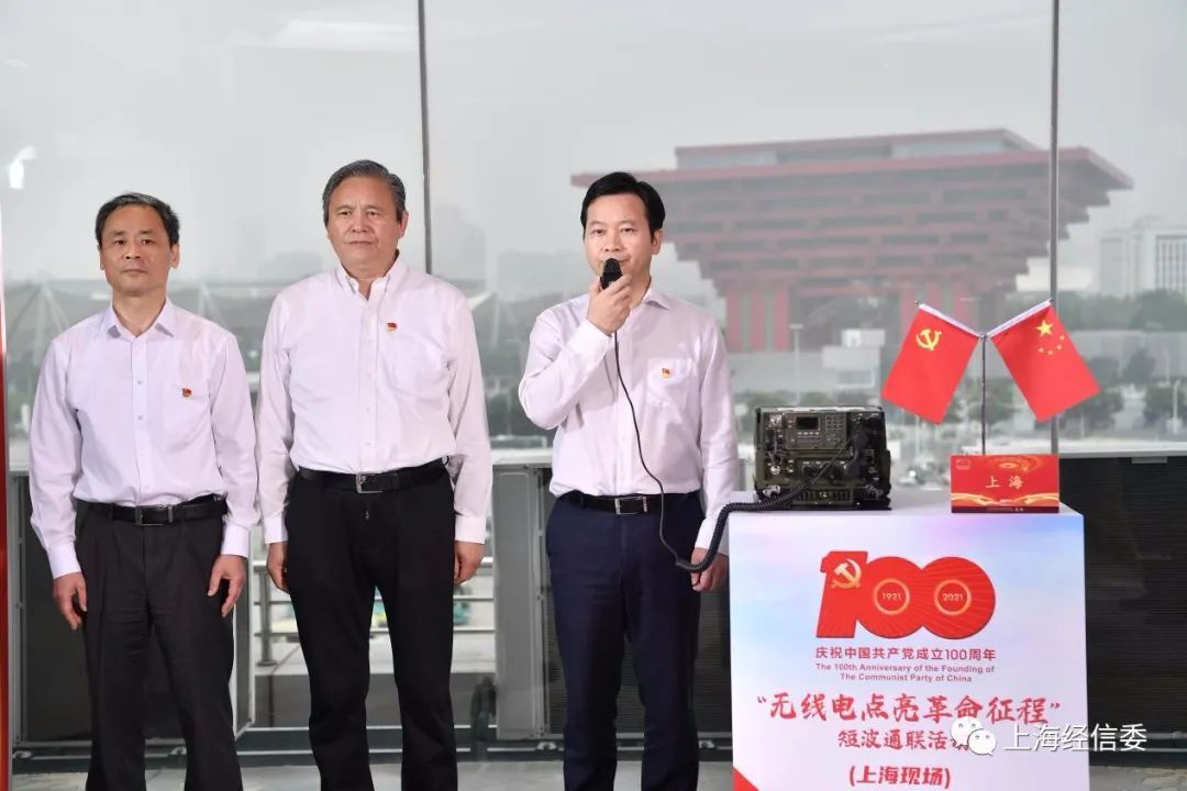 6月3日,工业和信息化部庆祝建党100周年“无线电点亮革命征程”短波通联活动成功举办。上海作为党的诞生地,是本次短波通联的“第一站”,市经济信息化委主任吴金城作为上海通联代表和北京通联中心进行双向通联,上海成功打响红色电波通联“第一枪”,圆满完成此次短波通联任务。