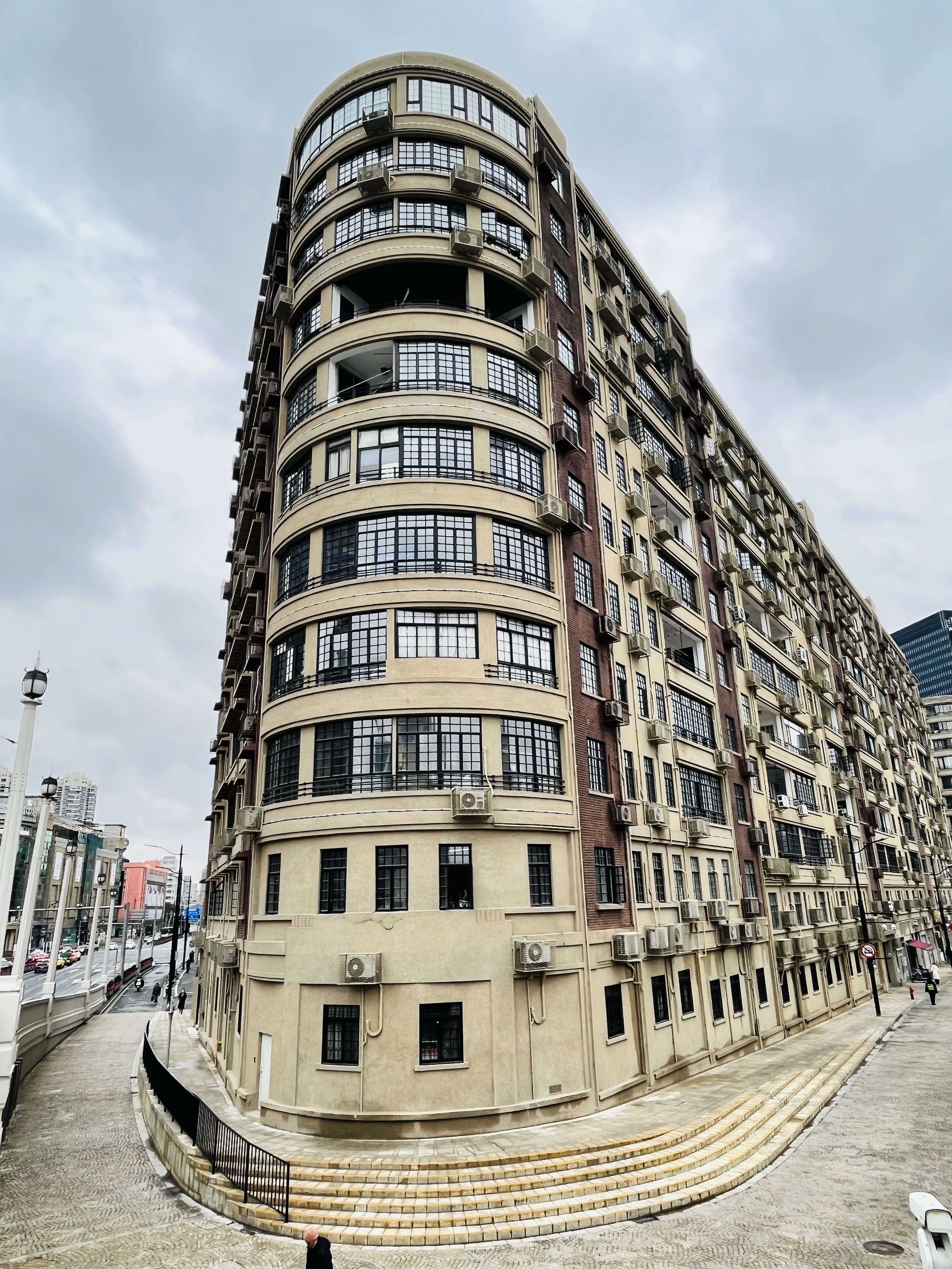 河滨大楼横跨整个街区,是苏河湾天际线的重要组成部分,修缮后的大楼外立面恢复原有壁柱及水刷石材质,使大楼重获“新生”。