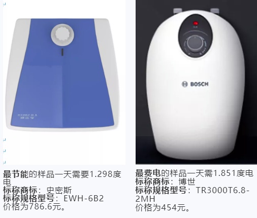 最节能的样品一天需1.298度电,是标称由艾欧史密斯(中国)热水器有限公司生产的产品,标称商标为A.O.SMITH 史密斯,标称规格型号为EWH-6B2;