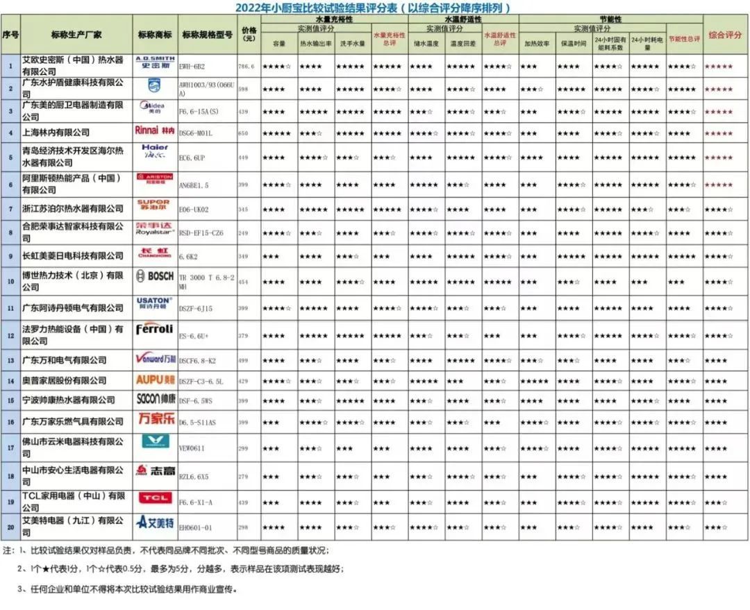 对20件小厨宝进行了比较试验