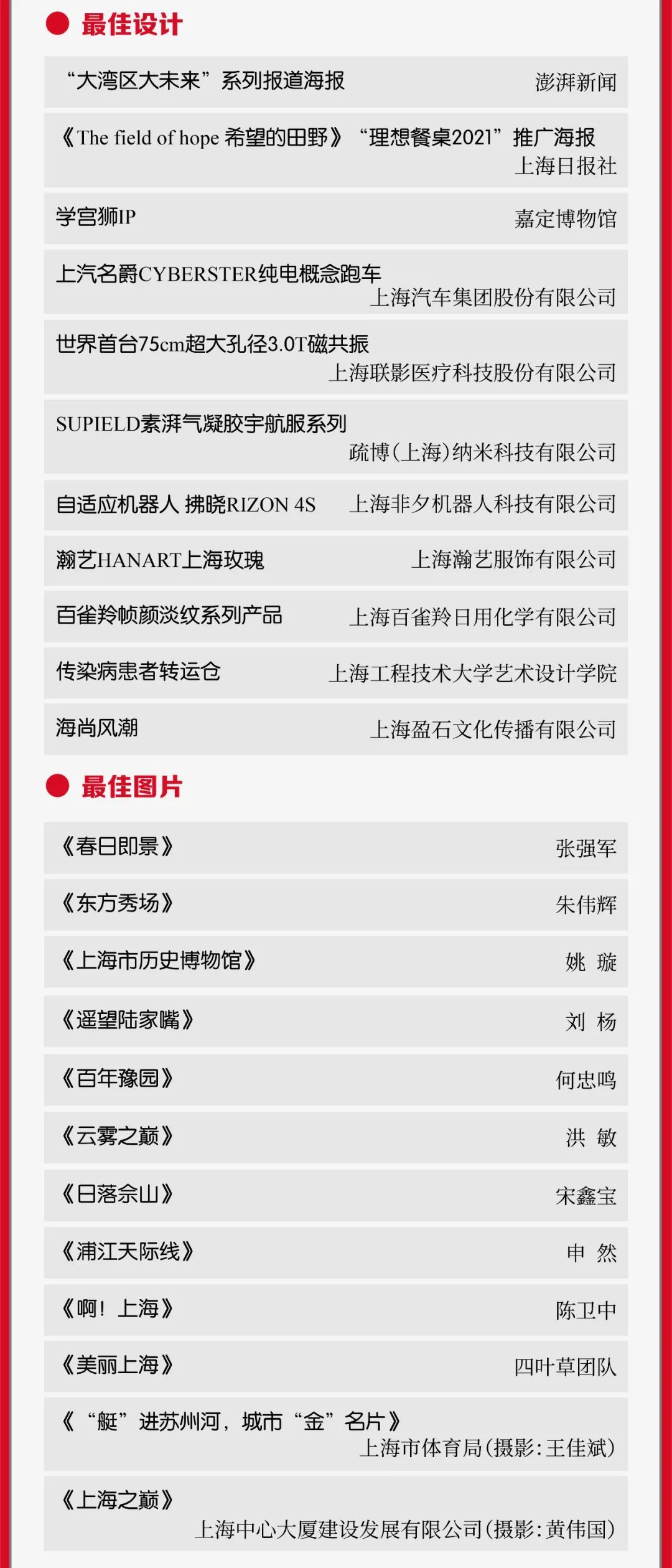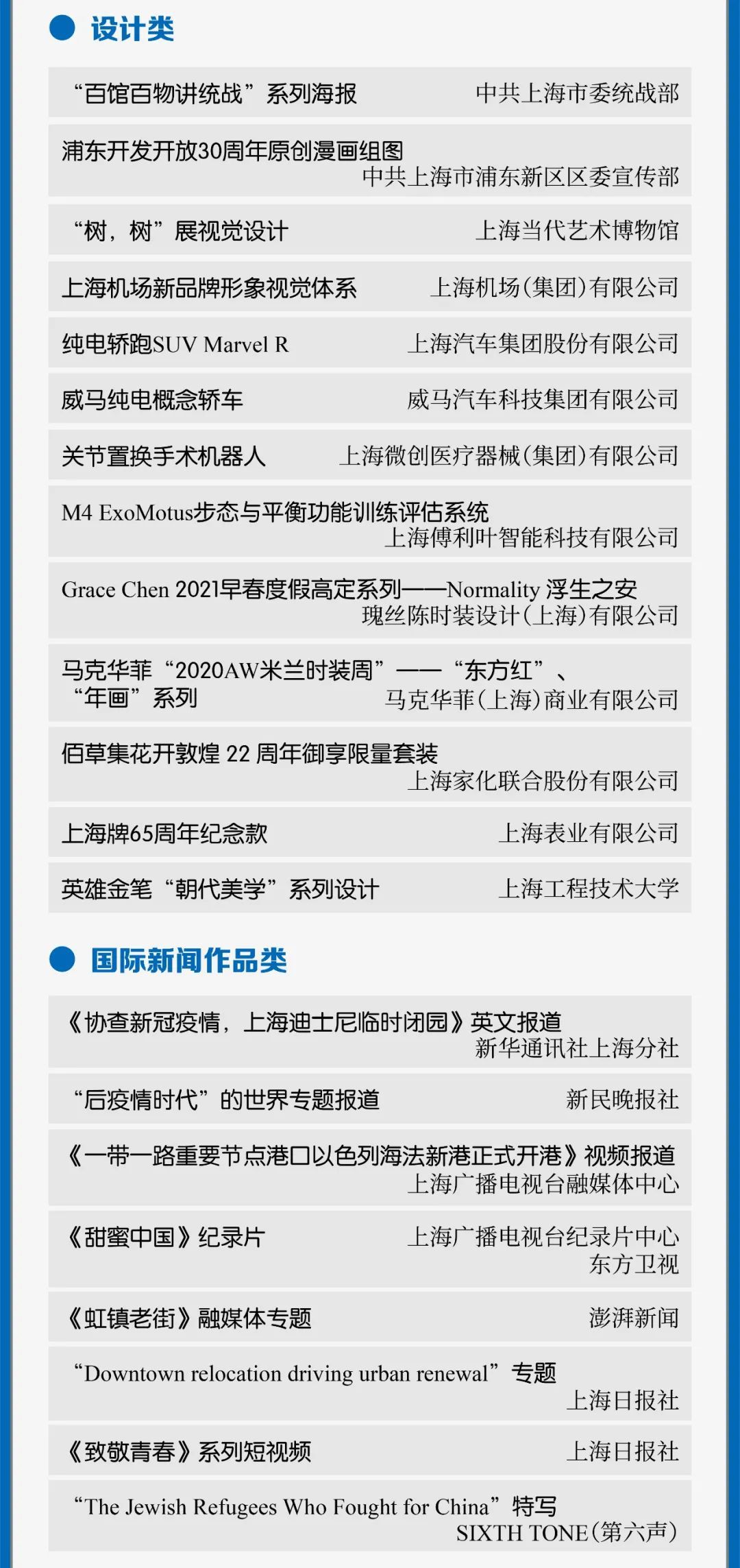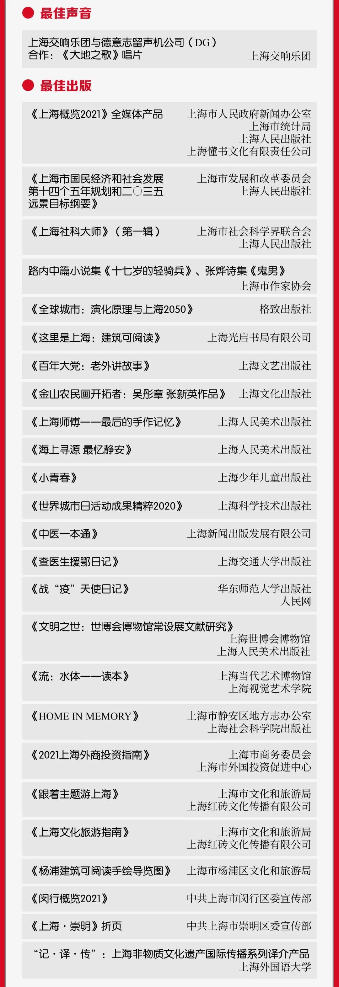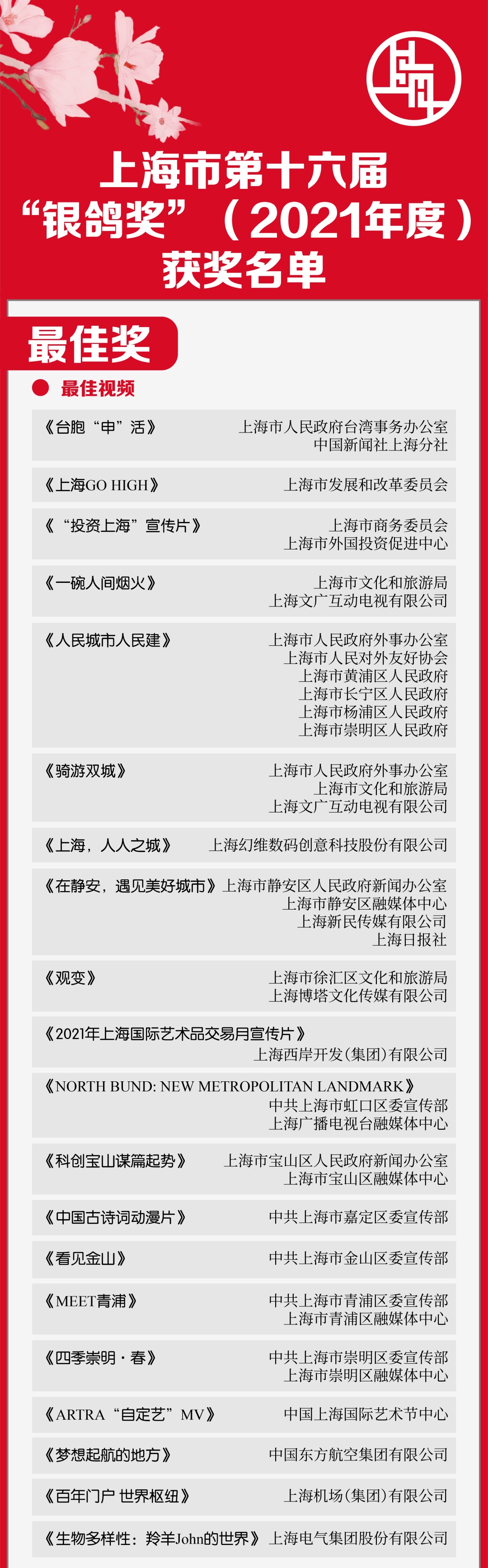 上海市第十六届“银鸽奖”(2021年度)