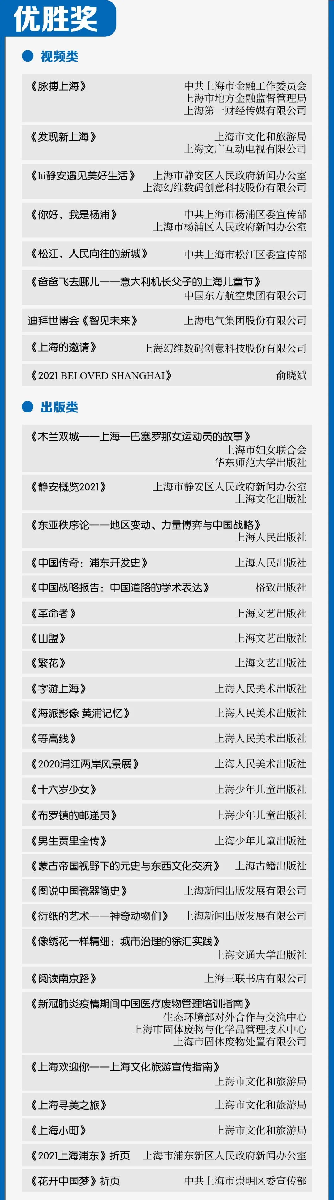 附上海市第十六届“银鸽奖”(2021年度)获奖名单
