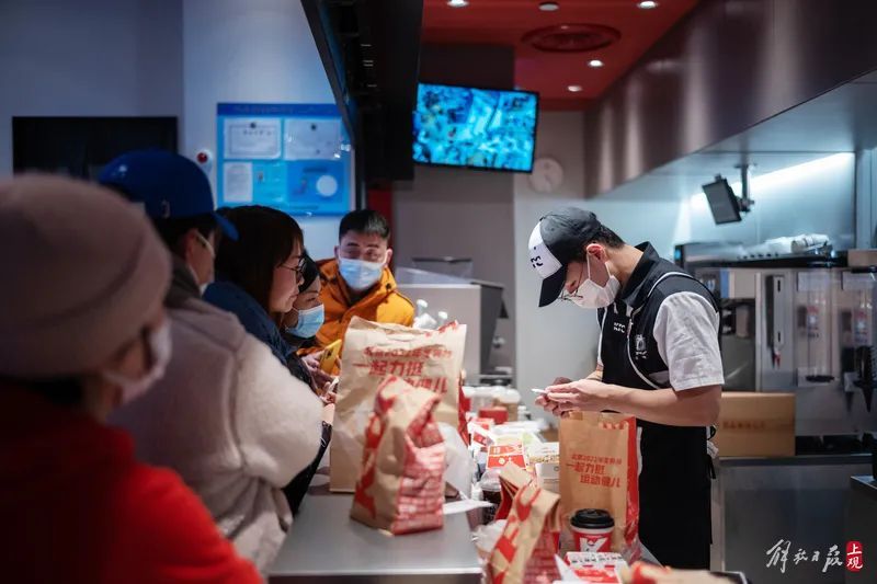 店里生意很好,其实这间店卖的产品和普通门店无异,毕竟有流量加持,店里的小哥忙得焦头烂额,打包的餐点摆了满满一柜台。