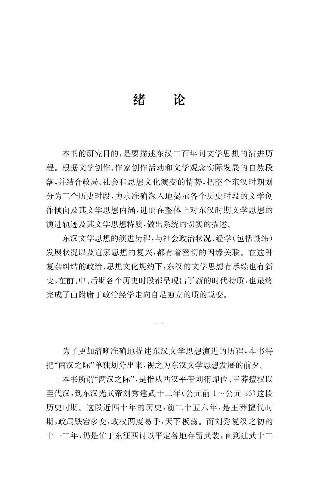 拙著《西汉文学思想史》出版后,得到了不少前辈先进和时贤同道的谬奖。于是,我备受鼓舞,立志接续撰写《东汉文学思想史》。其间,不断有师友督促:“《东汉文学思想史》什么时候出版?”深感鞭策和情谊。无奈我生性闲散,凡事往往凭兴趣和冲动而为。喜欢焚膏继晷地读书,偶有心得就随手书诸书页边眉;其中可作文章者,则自然梳理成文。但是不愿受外力逼迫,也不想给自己限定时量去做学术研究,尤其对系统丛杂的“大工程”总是心存天然的畏惧和抵触。所以单篇论文相继发表了一些,而心心念念的《东汉文学思想史》专著,却迟迟不能成稿。