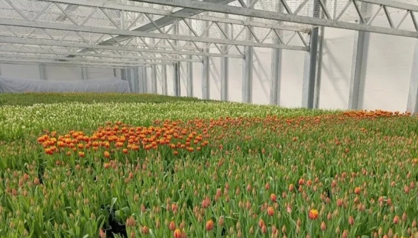 通过冷库生根完成花芽春化处理,运用立体高效储存技术,每年12月至次年4月可生产1000万郁金香鲜切花。
