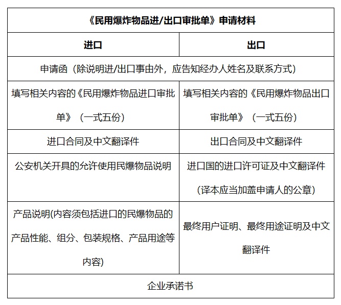 1.《民用爆炸物品进/出口审批单》 实行“一批一单”和“一单一关”管理。