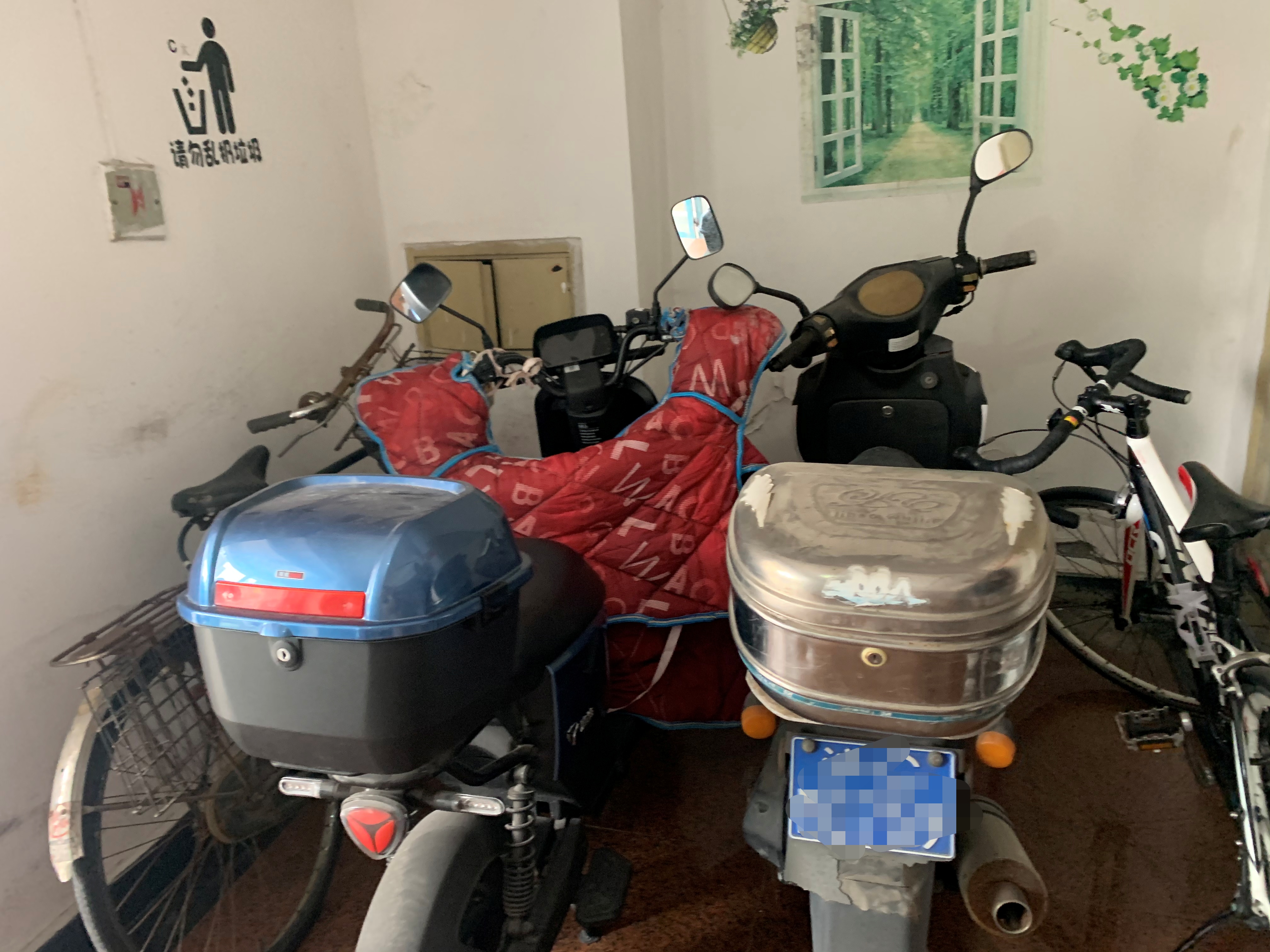 楼道内随意乱停车、堆物