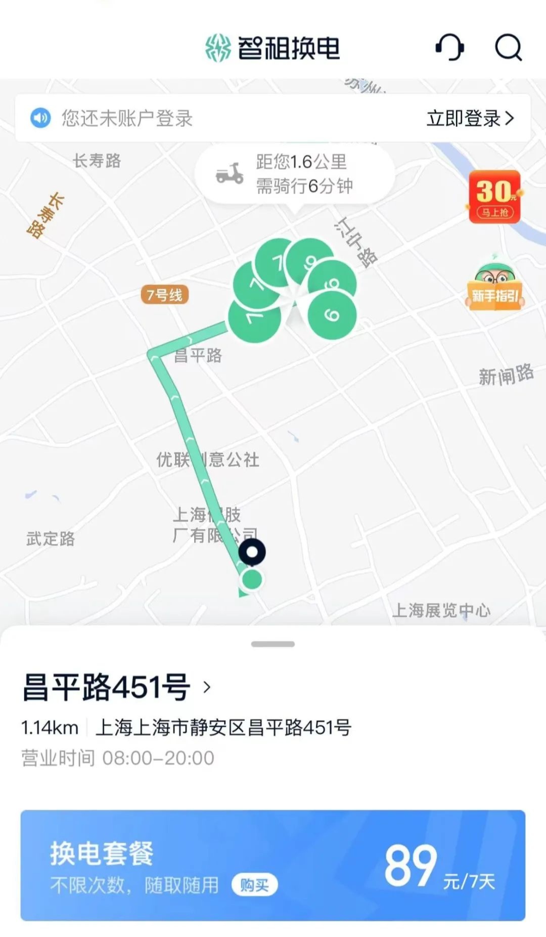 身着黄色外卖服的梁小哥打开手机给记者看,他使用的是一款叫“智租换电”的APP,在这个软件内,从长期租赁电动自行车到更换电瓶,服务一应俱全。电动车租赁按照不同车型从299元每月至400元每月不等。而换电套餐,不限次数,随取随用,7天是89元。平均每天13元不到。