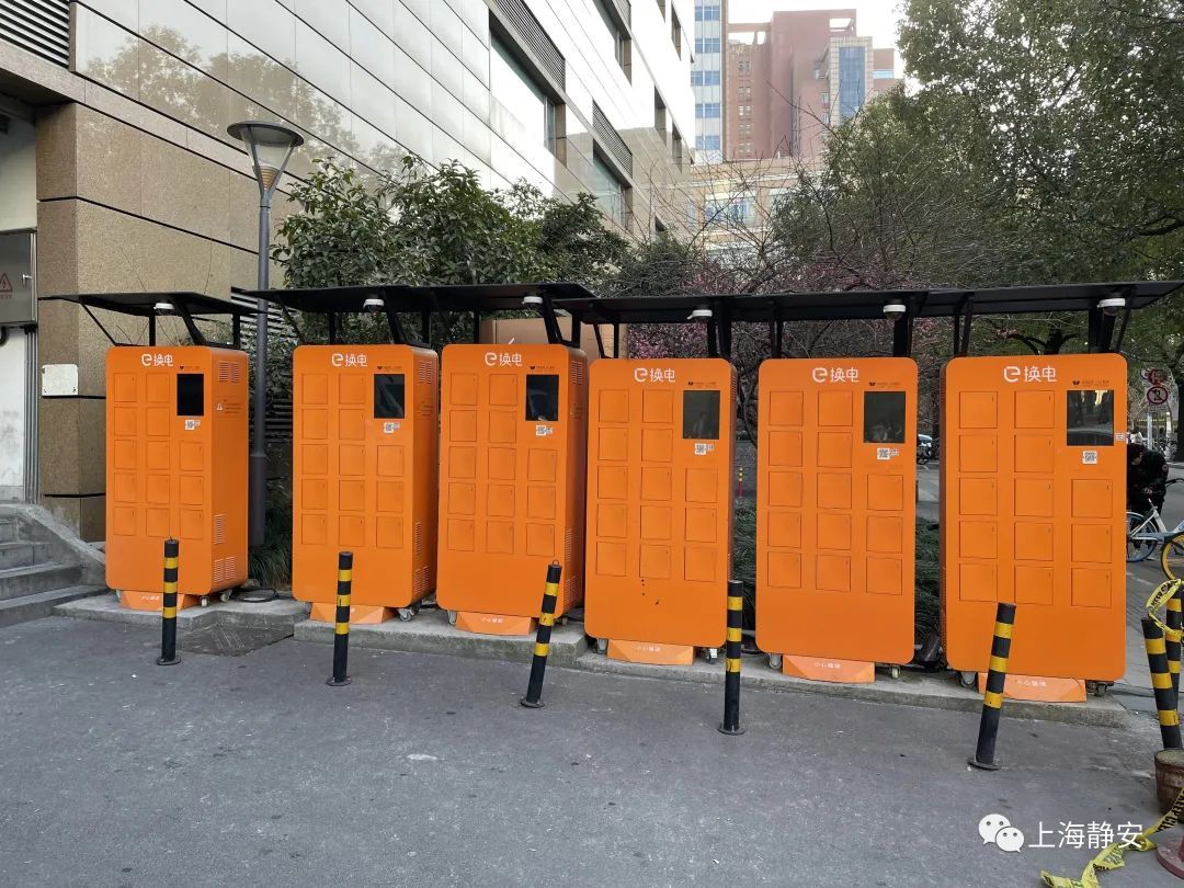社区内橙色的“换电”电池更换站
