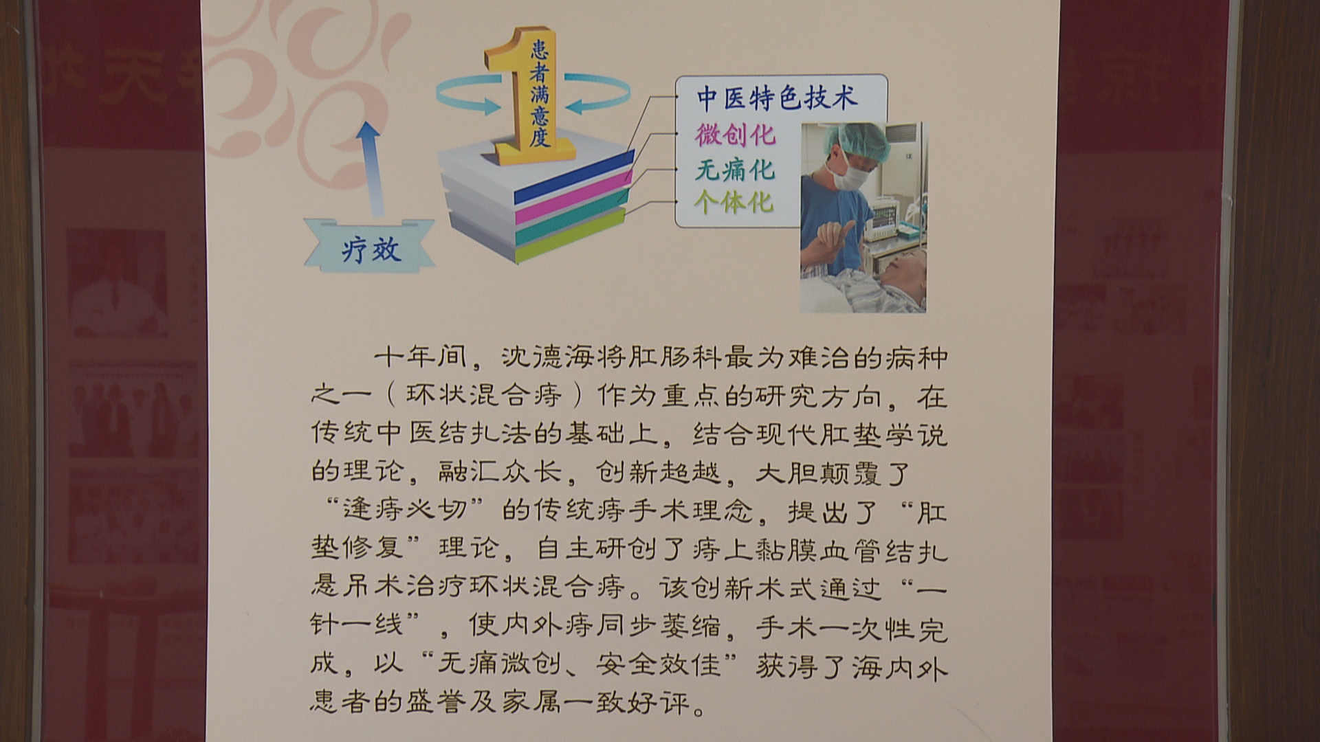 实际上,医院的肛肠科也是沈德海一手创立,从2007年的一个小科室,发展至今获批上海市中医重点专科培育建设项目,沈德海和团队的手术不用刀,不切除任何组织,通过“一针一线”,修复肛垫组织,这也是在他自己创新的“痔上粘膜血管结扎悬吊术”,结合传统中医结扎法的基础,以及现代肛垫学说的理论,名字听上去复杂,但核心简单,保留全部可以保留的,并且将肛垫进行修复,术后,不需要换药,患者的肛门形状也同时得到修复。手术能够做到“无痛”,并不是一蹴而就,靠的是不断的尝试和优化,比如手术中使用到的线,在术后一段时间内会自己自动脱落,这样病人就不用被换药的痛楚所困扰,而这根线,团队也是经过反复实验,得到最理想的选择。