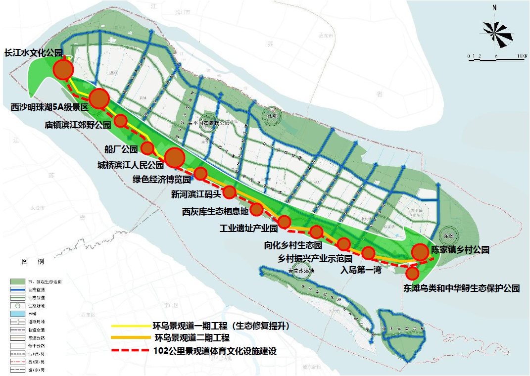 崇明将坚持把保护、修复长江生态环境摆在压倒性位置,加强重要湿地、堤防、江岸带保护修复,推动修复生物重要栖息地,同时将沿江依镇布点建设一批湿地公园、滨江公园,打造“长江百里生态秀带”。