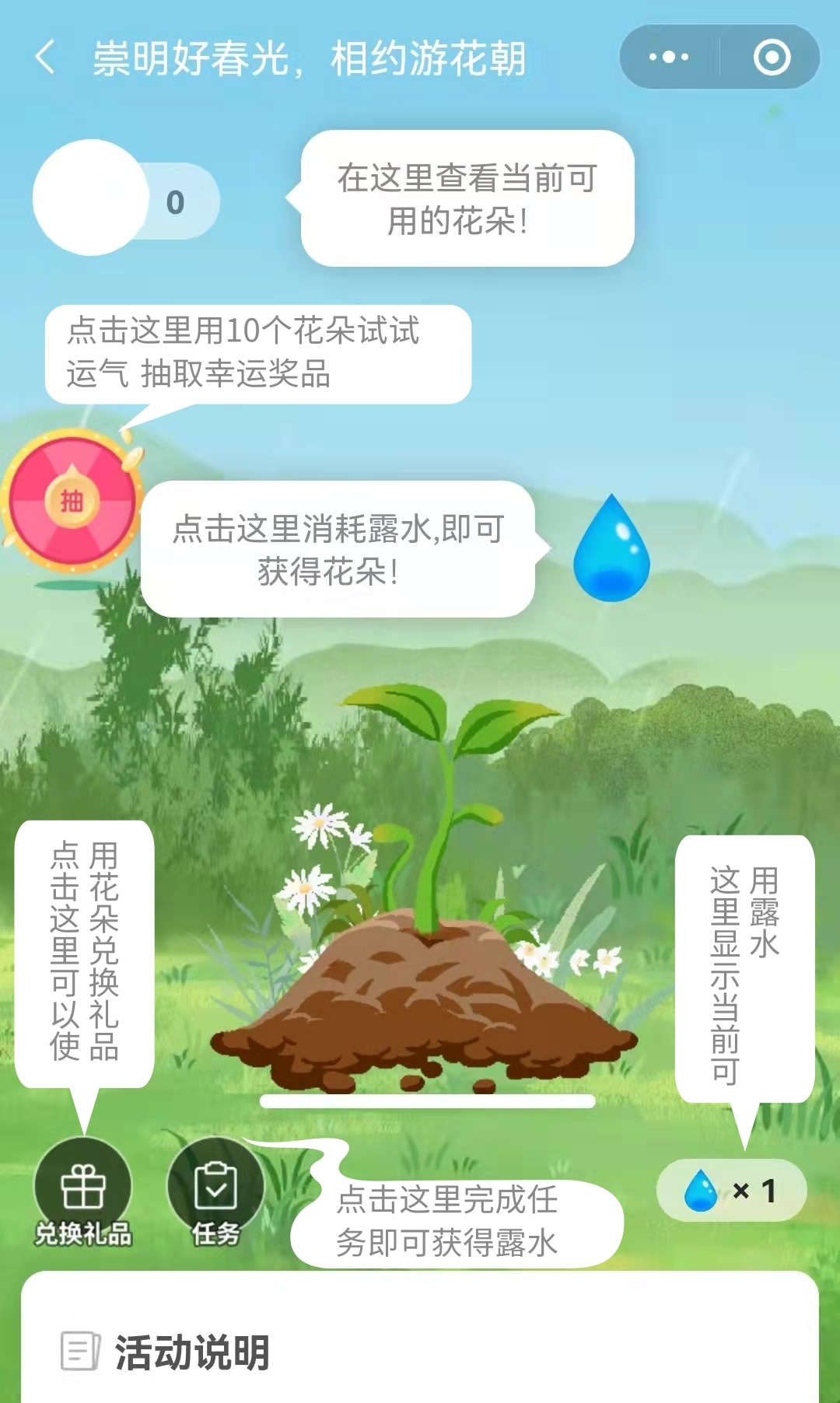 步骤二:点击任务-完成任务-获得兑换花朵。