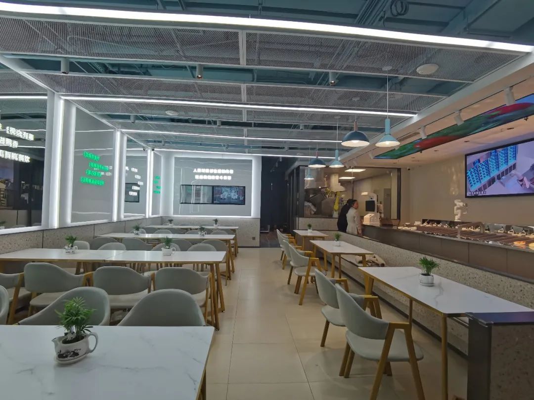 熙香AI食堂面积138平方米,设有智慧烹饪区、智慧回转台、自主结算区和就餐区,共有40个客座。简约现代的装修风格让整个空间显得宽敞明亮,而全程信息化、无人化、标准化烹饪过程更是增加了食堂的科技感,让不少过往的白领、居民充满期待。