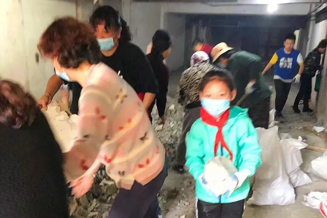 地下空间清理工作量巨大,人手是个不小的问题。如果请第三方公司帮忙,经费支出自然又是大头。为解决这个问题,小区人员上下一心,党支部、居委会、物业公司等多方合力,小区居民也积极报名做志愿者,一起开始轰轰烈烈的“搬砖”工作。物业公司主要负责清运大件垃圾,其他人员则帮忙搬运小件垃圾,其中戴着红领巾的学生也来协助,共同形成了“清运流水线”。小区为了嘉奖志愿者们,参与清理的居民都会获得志愿积分,大家用积分可以优先参加艺术中心的课程。就如一位居民所说,“共建才能共享”。这个地下空间改建后的“盛世”,是大家齐心协力的成果。