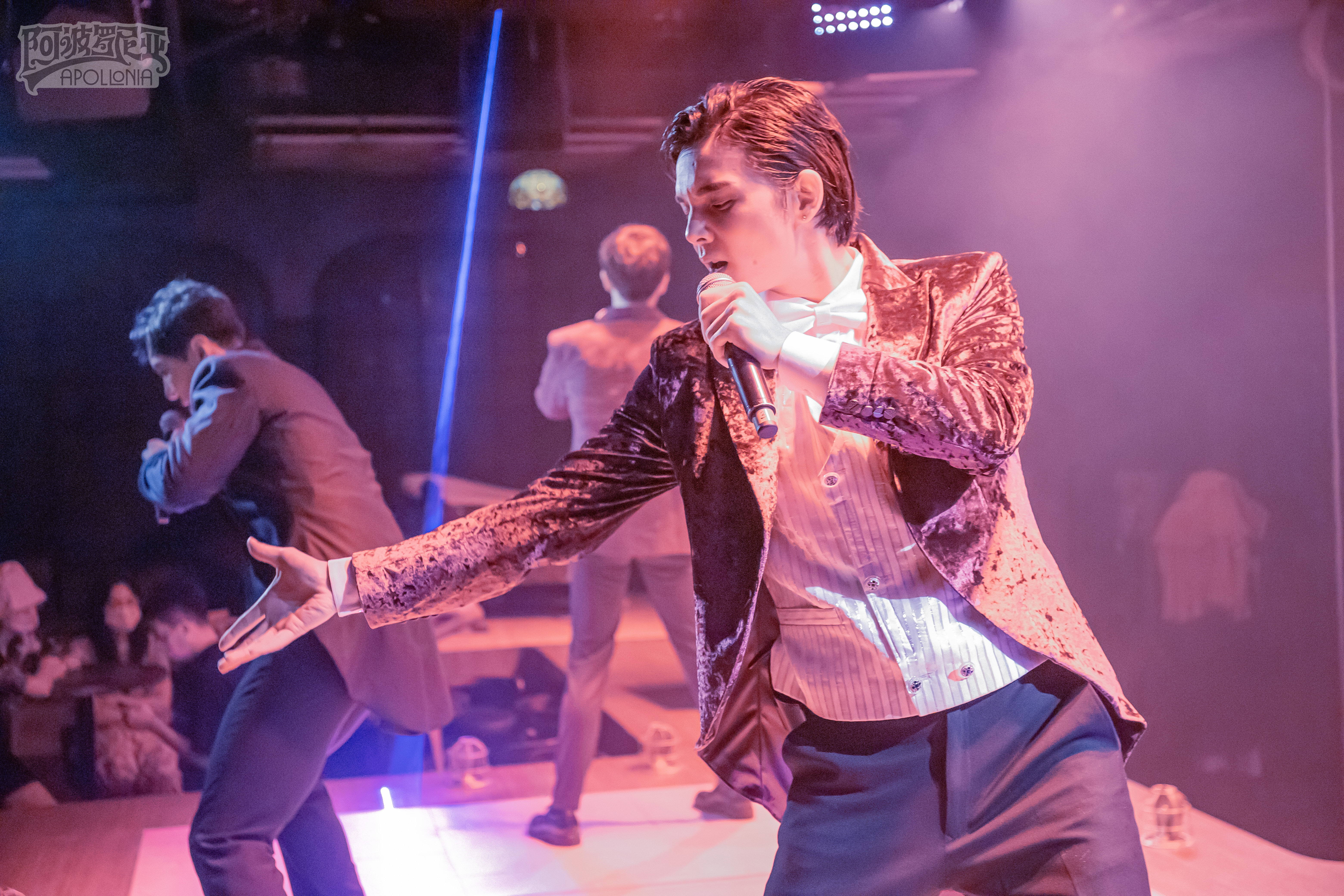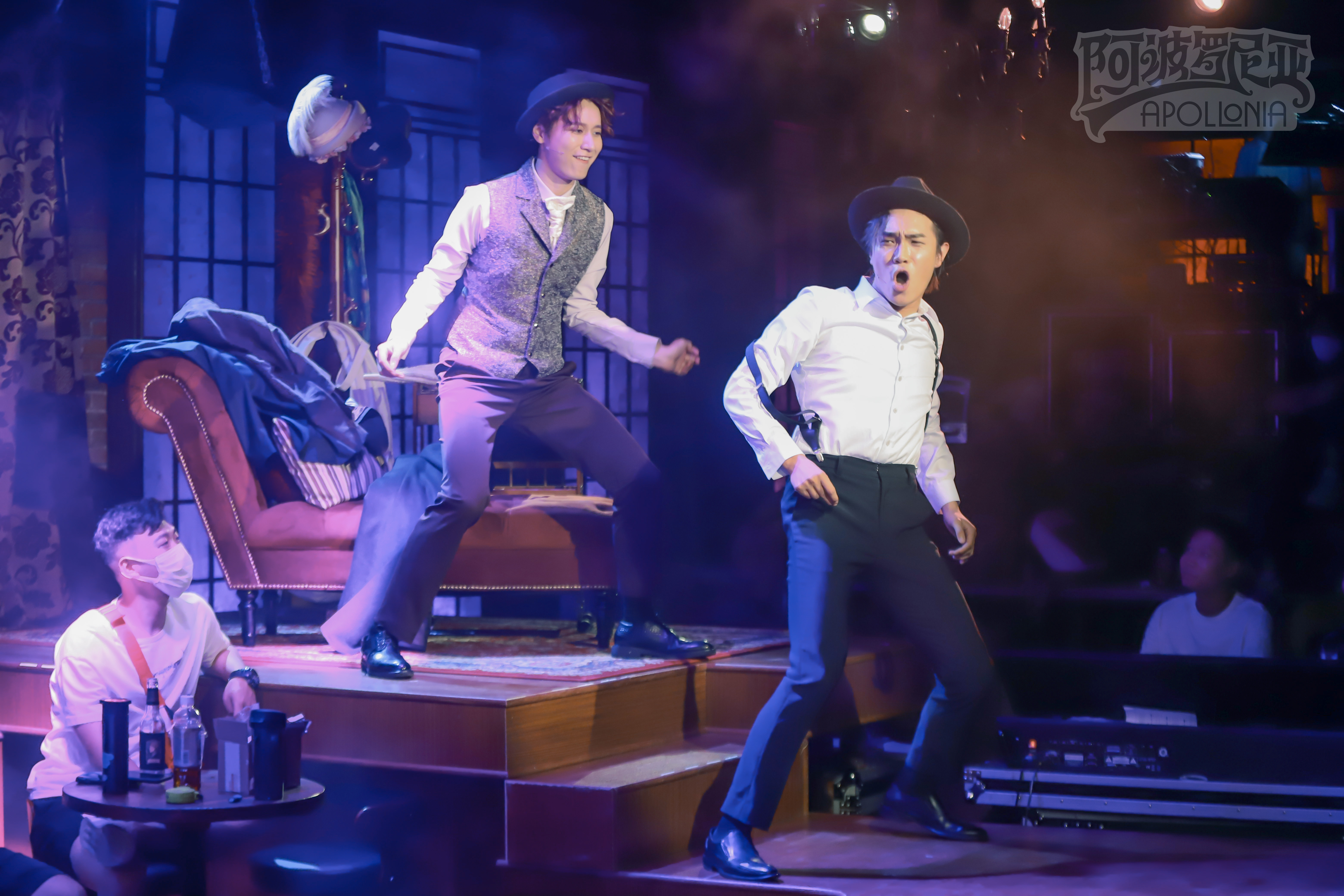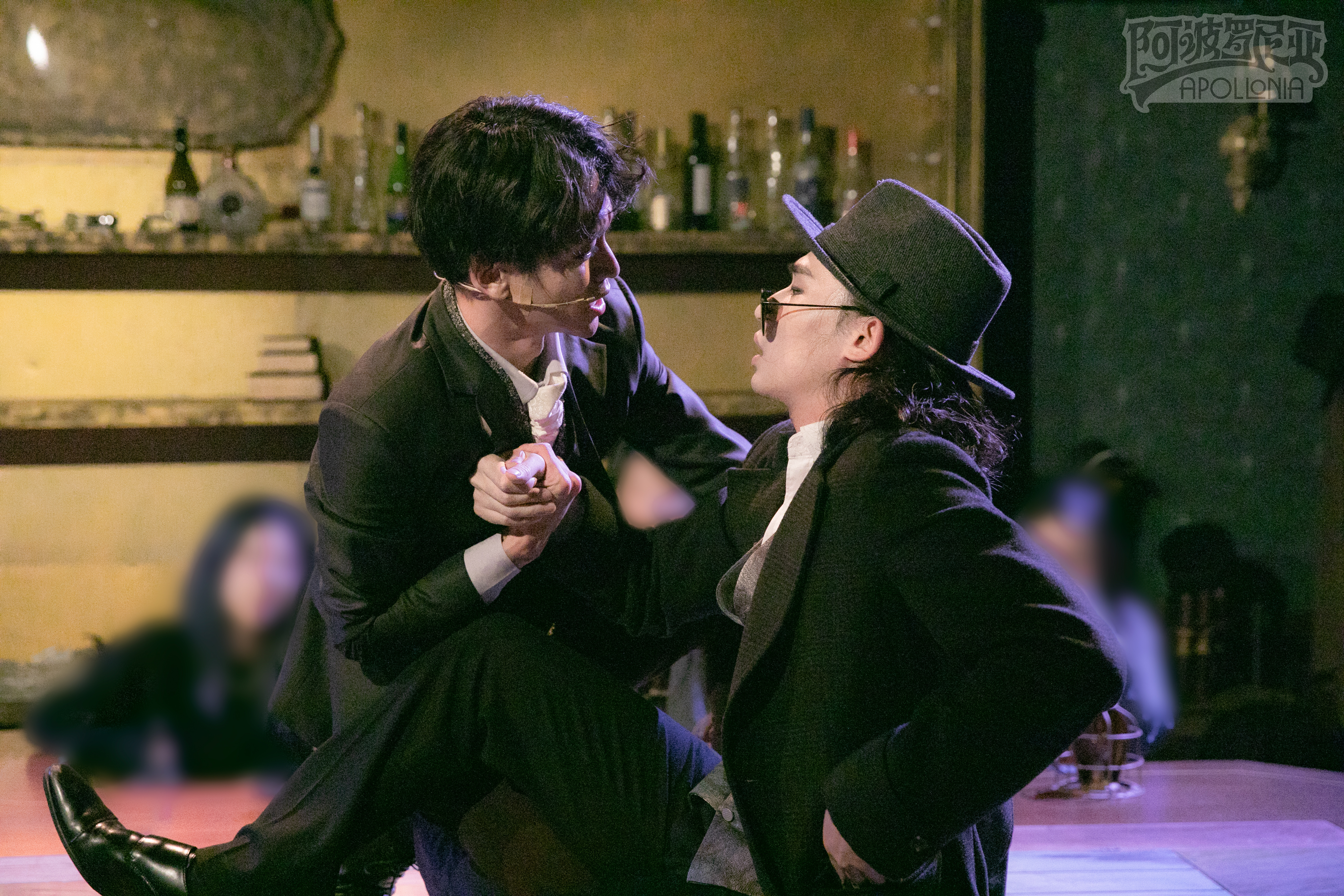 另一方面,他又将《阿波罗尼亚》从原版的小剧场音乐剧落地改为环境式“小酒馆”模式。观众观演时,演员们的汗水、喘息都近在咫尺。第一场演出后,所有演员都说:“知道离观众近,但是没想到离观众这么近。每一个细微的表情和动作,都会被捕捉到。”
