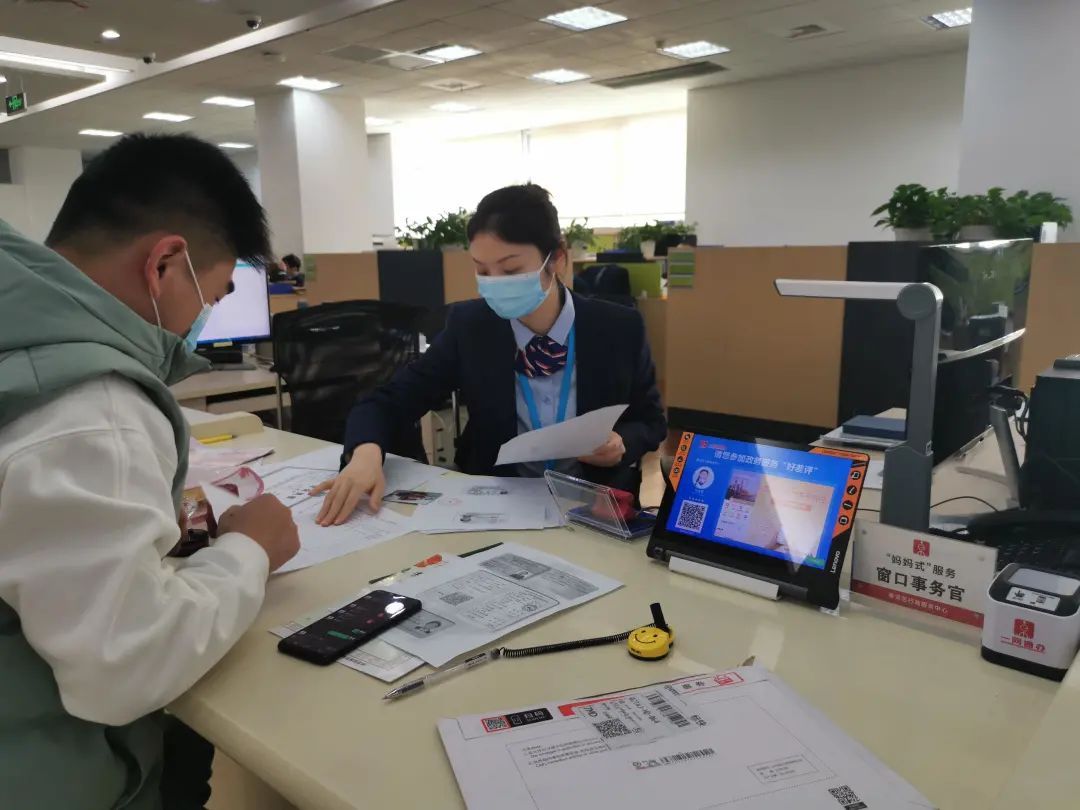 “妈妈式”服务窗口事务官沈青介绍道,之前的办事流程有固定的分批步骤,窗口基本上仅仅负责预审材料,之后还需要转送到中台进行审核、制证、打证等环节,最后再由窗口发证。“现在审批权下放到窗口,这样子窗口可以一条龙服务,更加方便,节省了群众的时间。”