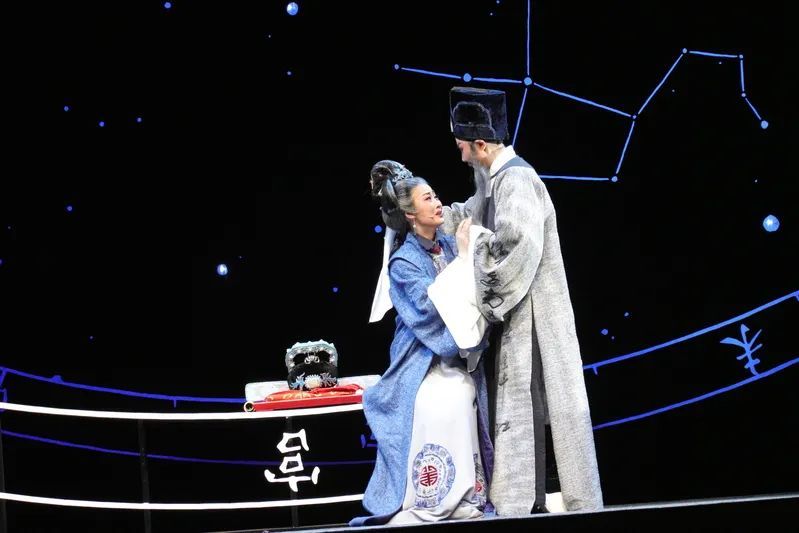 为这支由国家级专业院团和本土民营剧团组成的创作队伍牵线的,是徐汇区委宣传部和区文旅局。此外,徐家汇街道、凌云街道、复旦大学哲学学院利徐学社等也都提供了学术、资源支持。这其中,最为重要的支持无疑来自上海越剧院。如意剧团与越剧院签订共建协议后,越剧院不仅派出了优秀的主创团队,更请出了作曲、舞美设计、灯光设计和唱腔设计等不同领域的专家为剧目保驾护航。