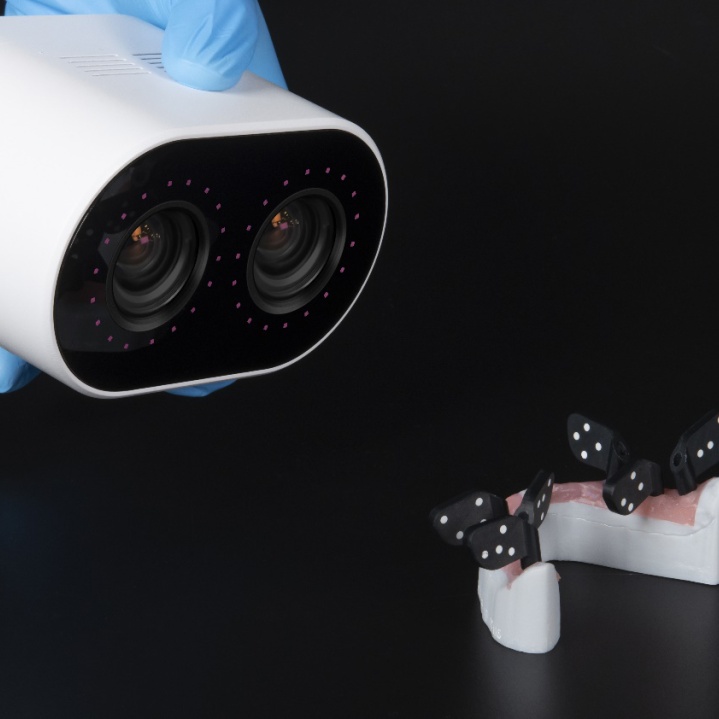 本次临床验证的顺利完成推进了数字化无牙颌种植口外印模技术的国产化进程。使用的样机同时也是全球范围内集成化程度最高,最小巧轻便的扫描系统,具有更高的用户操作友好度。其采用近红外波段光源,并配备两个数百万像素高速红外相机,可完成每秒100帧高清图像采集,平均取模精度为20微米。