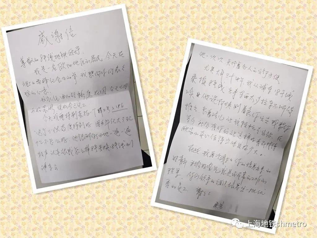 这位卜阿姨是上海虹口区志愿者协会的成员之一,一位网红达人-“麻球阿姨”,她特地手写了感谢信表扬贾梦赐。原来,大年三十这天,卜阿姨拎着大包小包欲换乘18号线,小贾耐心地引导卜阿姨如何换乘,用坚定的语气说“放心,我来送你上车!”无独有偶,几天前小贾在站厅巡视时又发现卜阿姨携带一个很大的行李箱出站时在闸机处卡住了,他热情又快速地再次帮卜阿姨解决了难题。