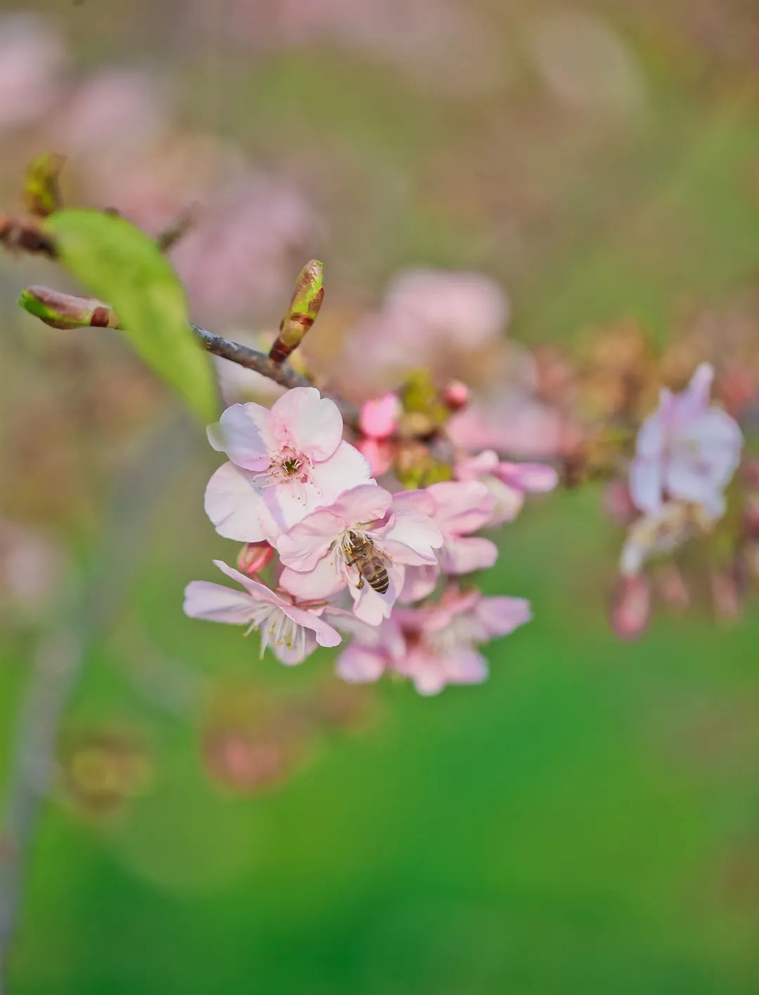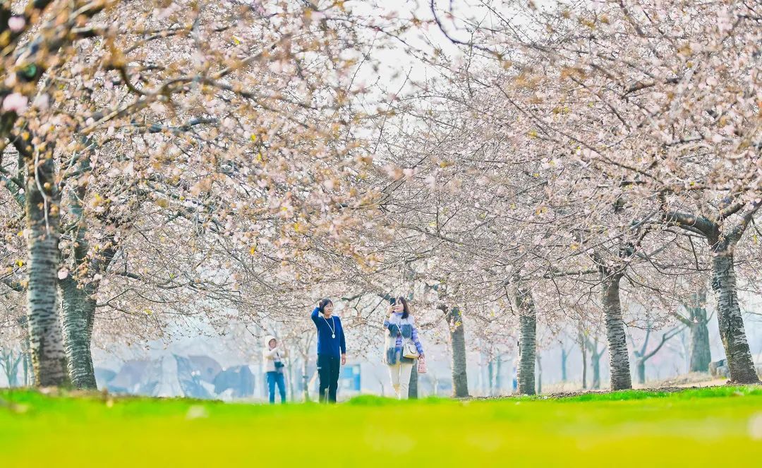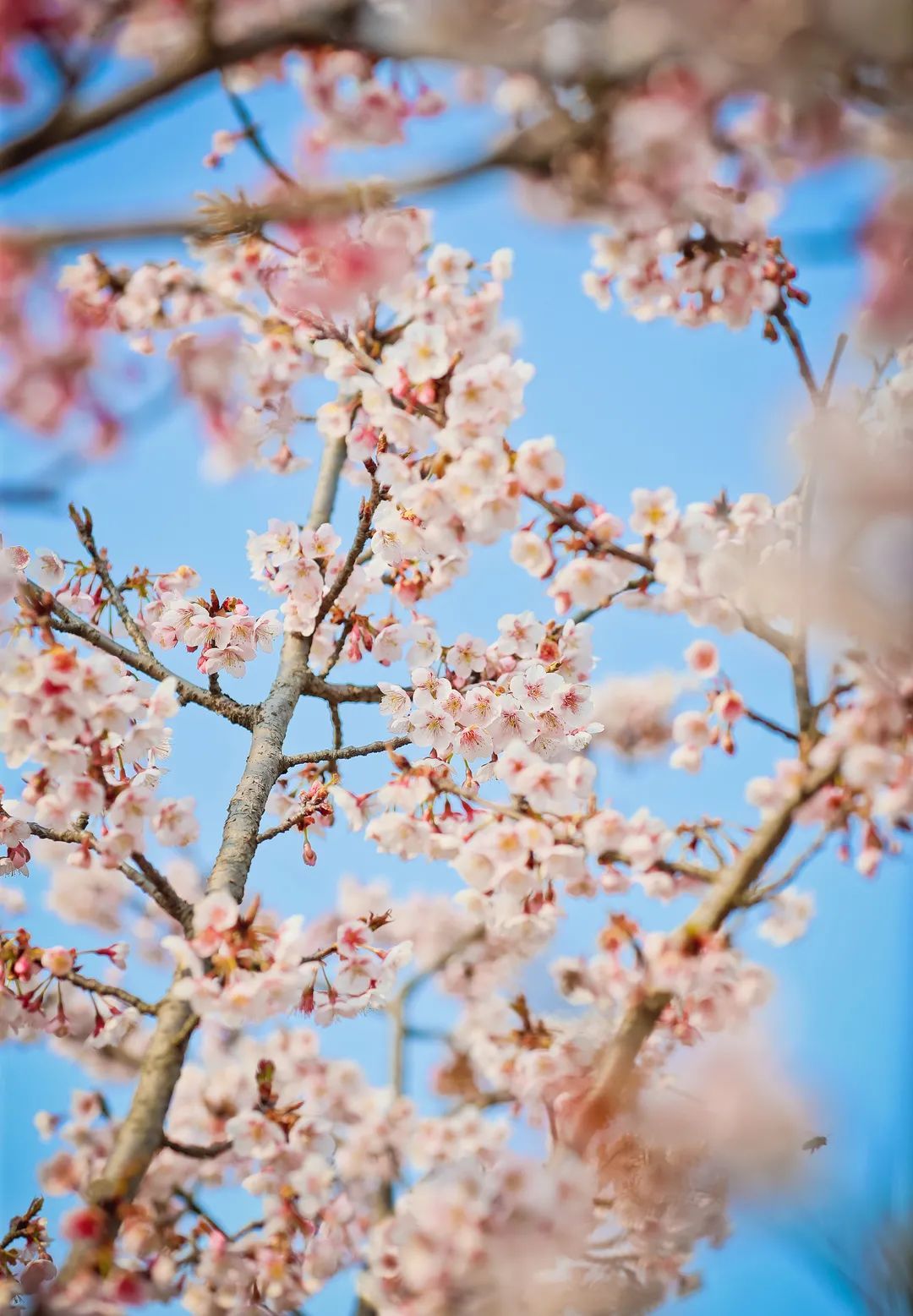 樱木大道位于樱花园内,暖意融融中,这里的河津樱已经吐露芬芳,进入了盛花期。如梅花般抗寒而艳丽的河津樱花朵较大,呈淡粉色。在河津樱的装饰下,樱木大道俨然成了一条粉红色的过道。游人们或闲庭信步,或赏花并拍下美景,在树下感受着微风吹拂洒落的花瓣雨,在别样的风景中邂逅诗意与浪漫。