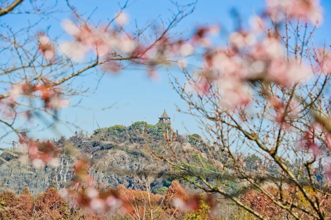 远远望去,樱花灿烂如云霞、如烟花,衬着不远处的辰山,一幅“人在画中游”的梦幻美景呈现眼前。650米长的樱木大道两边,河津樱已迫不及待地绽开粉红色的笑脸,满枝的樱花拉开了今年的赏花序幕。