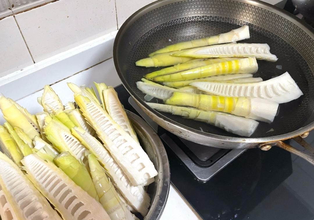 吃春笋,不管怎么吃,一定要先焯水。因为,通过高温的涮烫之后,可以将春笋中的一部分草酸分解掉。这样在吃的时候,可以减少春笋自身所带的发涩感,从而吃起来味道更为鲜美好吃。