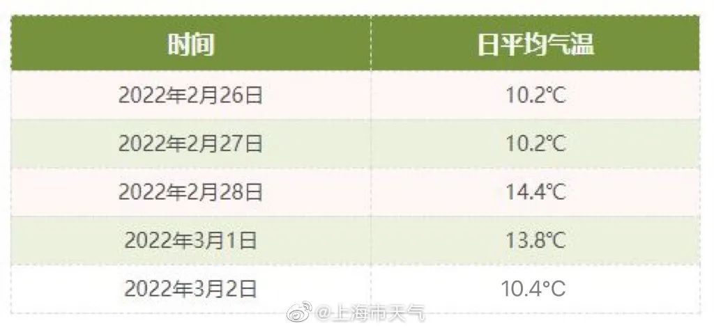 自2月26日起到3月2日,上海已经连续五天日平均气温超过10度啦!