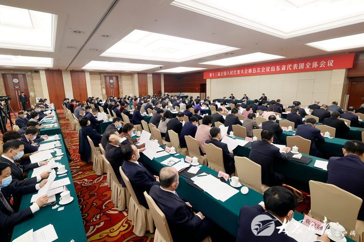 3月3日下午,出席第十三届全国人民代表大会第五次会议的山东代表在中国职工之家举行建团会议。