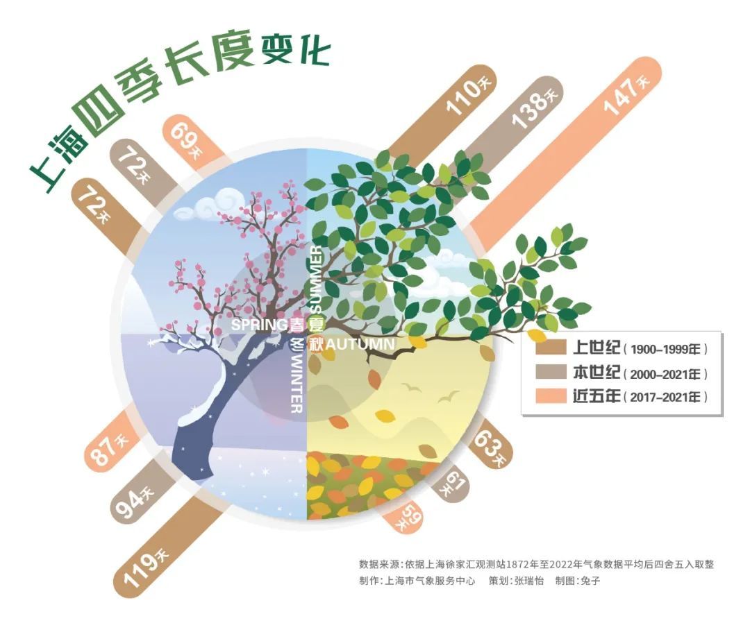 2021年12月25日入冬,2022年2月26日入春,冬季长度仅有63天,比常年平均少了一个多月,成为徐家汇观测站1872年建站以来记录的最短冬季之一!