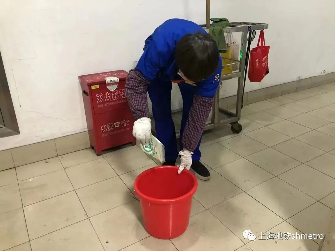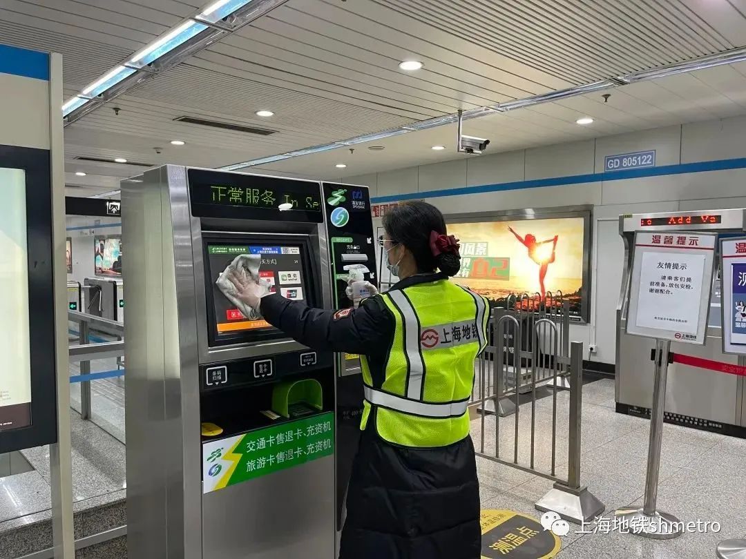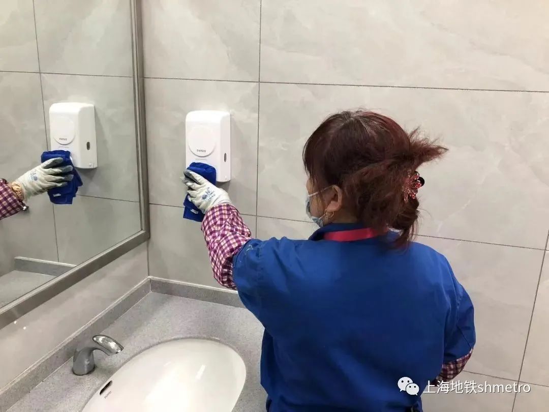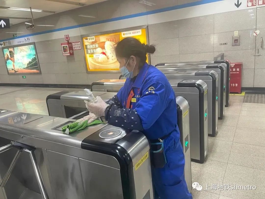运营结束后,员工们再次对车站进行擦拭和消毒,尤其是卫生死角,确保第二天运营后能提供一个安全的乘车环境。